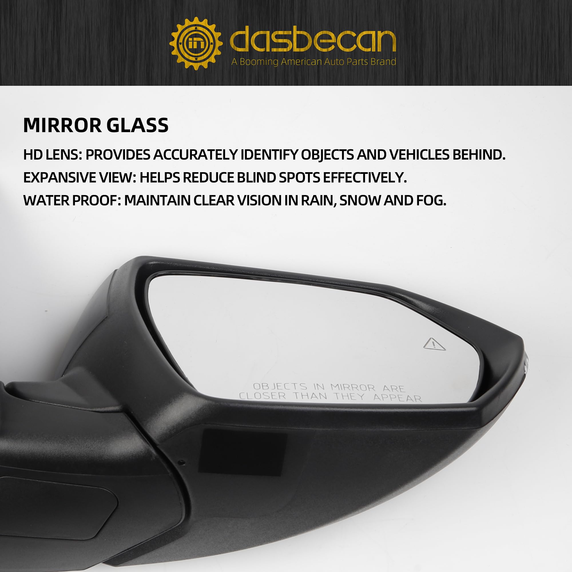 Functions: Turn Signal, Heated, Blind Spot Detection(BSD), Manual Folding, Power Adjustment Glass, Black(Paint to Match)