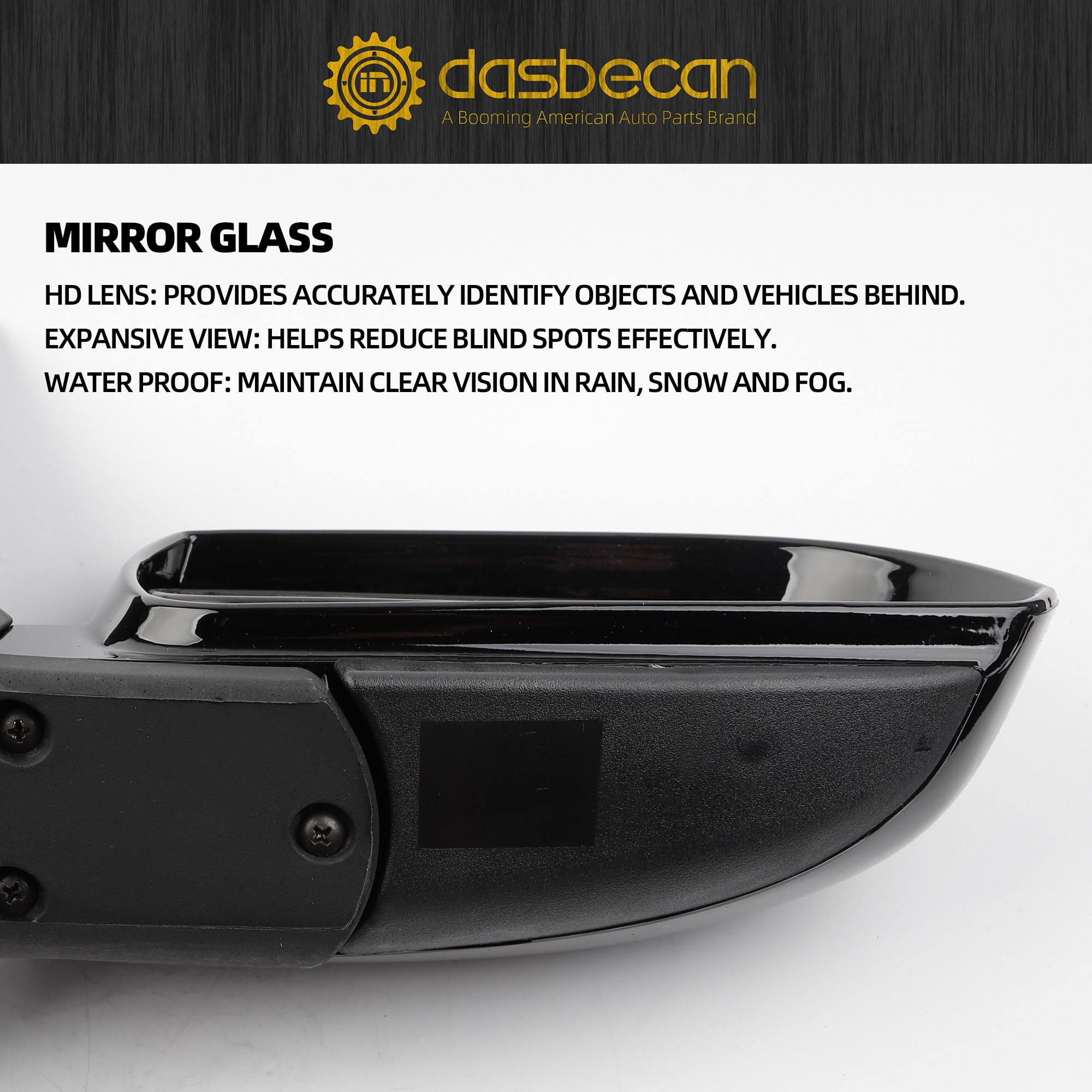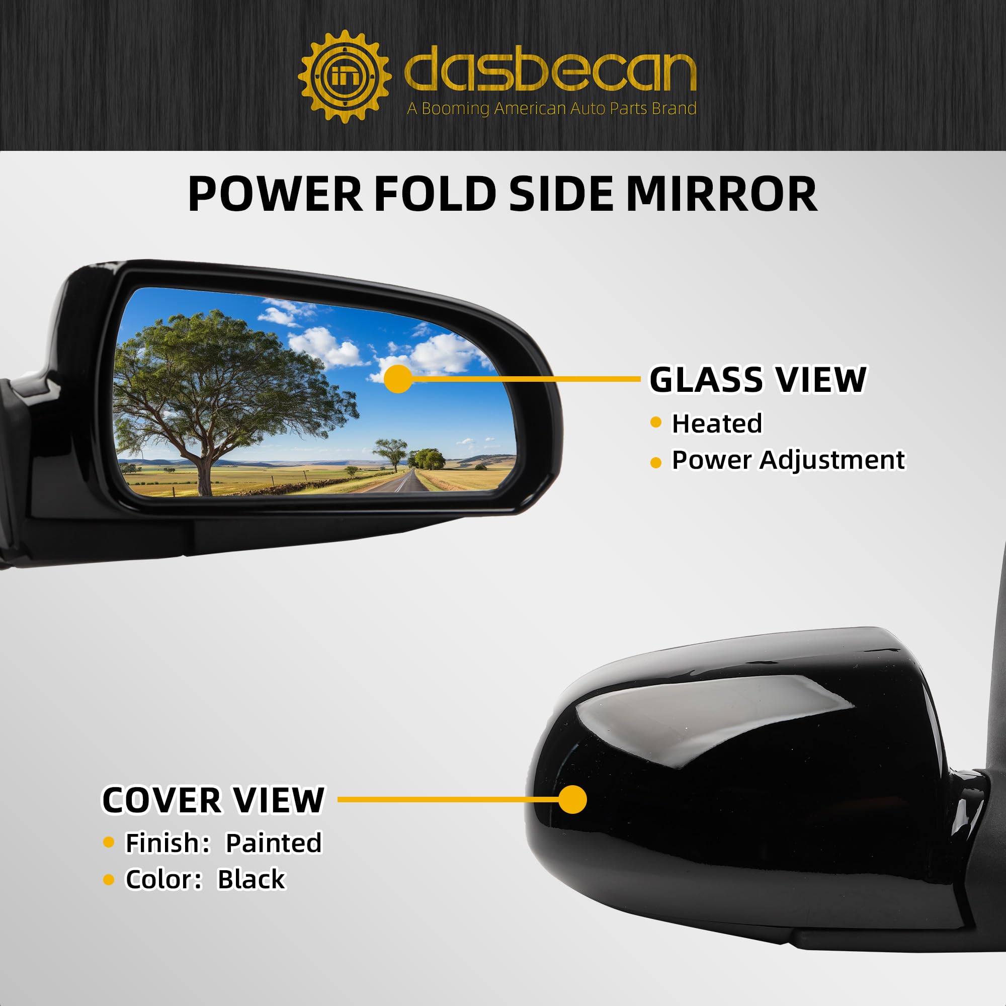 [Specifications] Position: Front Right Passenger Side; Color: Black ( Paint to Match ) ; Plug Configuration: 5 Wires/Pins. Fuction: Manual Folding,Power Adjustment, Heated.