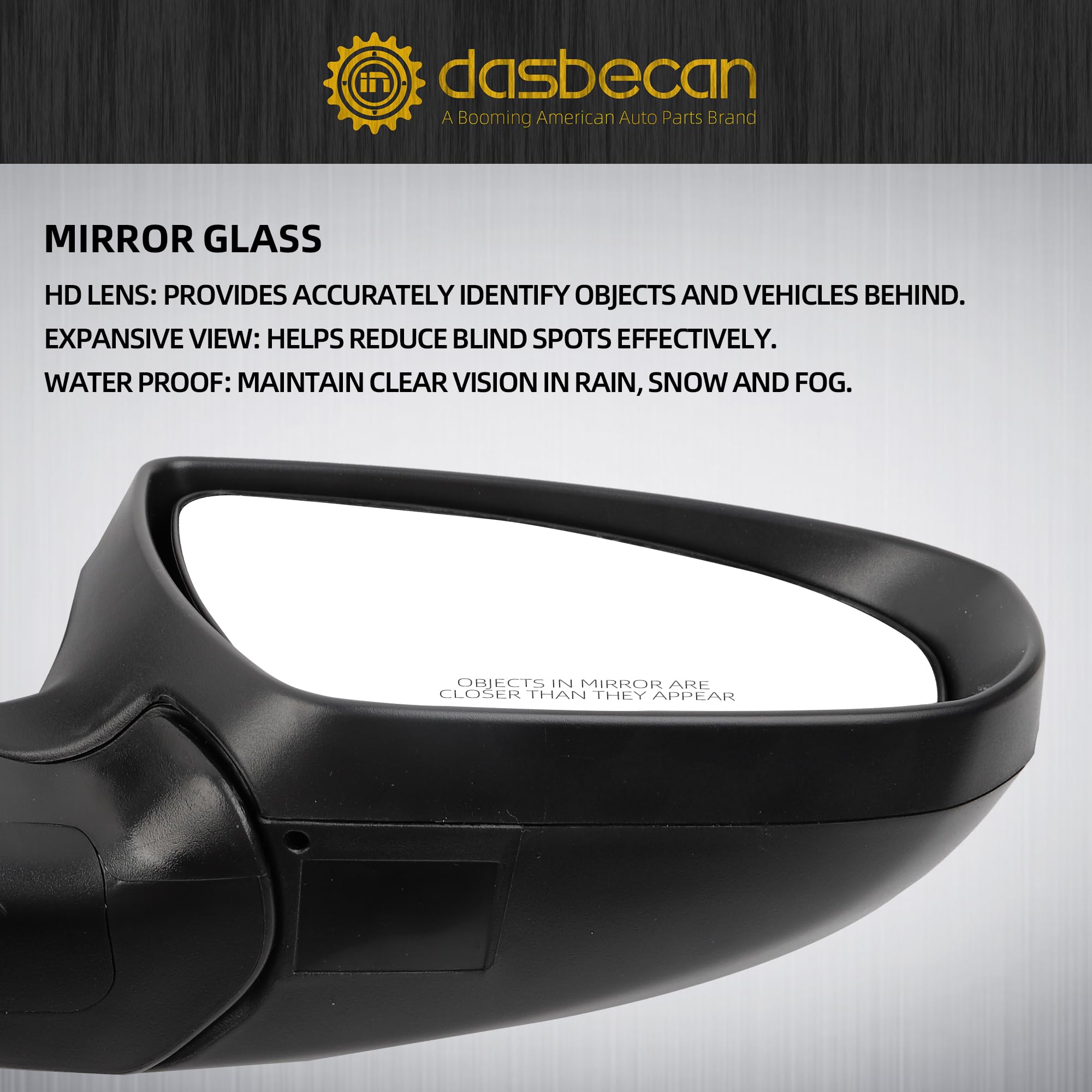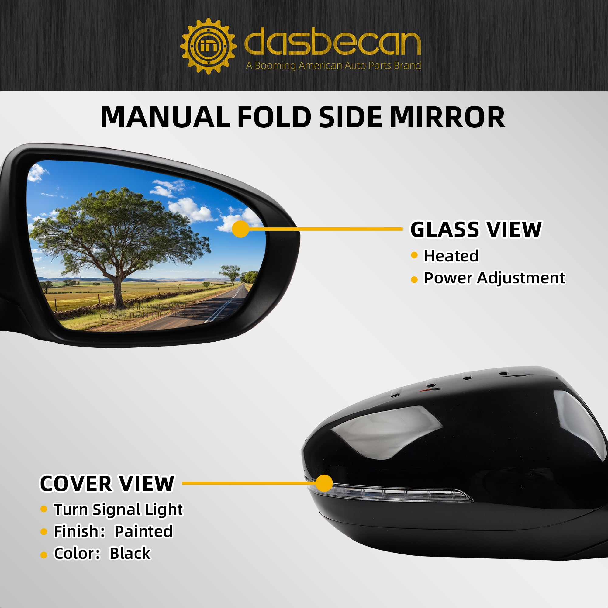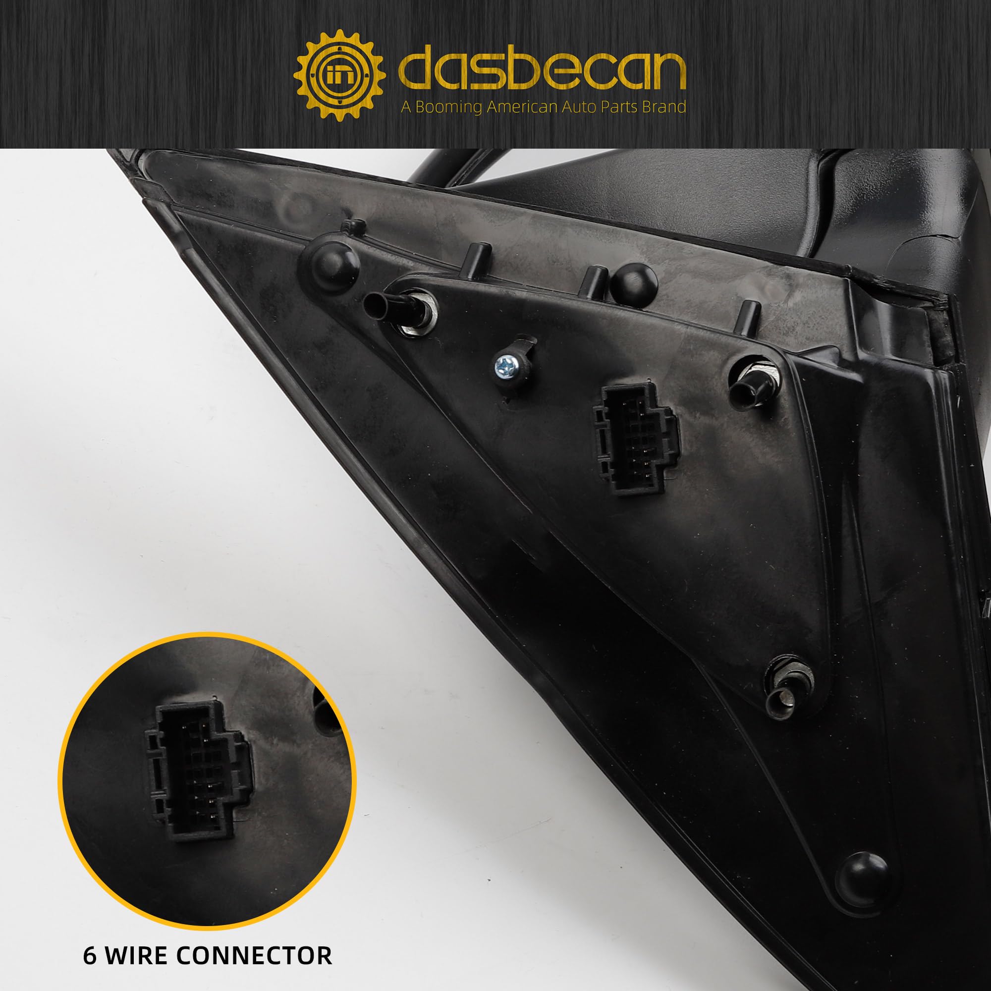 Function: Left driver side, Heated, Turn Signal, Manual folding (Not fit power folding), Powered adjustment glass, 6 pins
