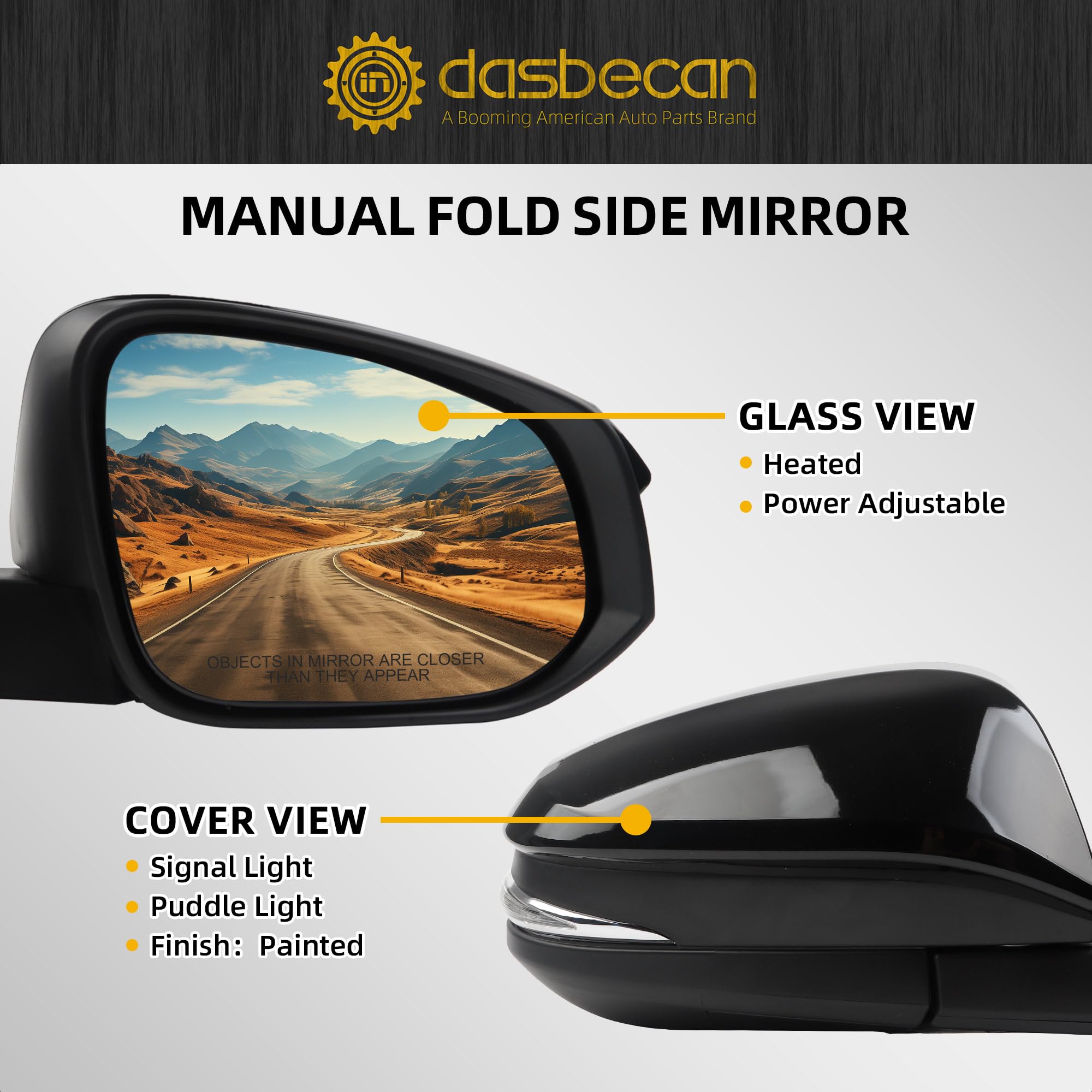 Specifications: Manual Folding, Power Adjustable Glass, With Heated, With Turn Signal Light, With Puddle Lamp, Paint to Match Black Cover, 9 Pins Connector