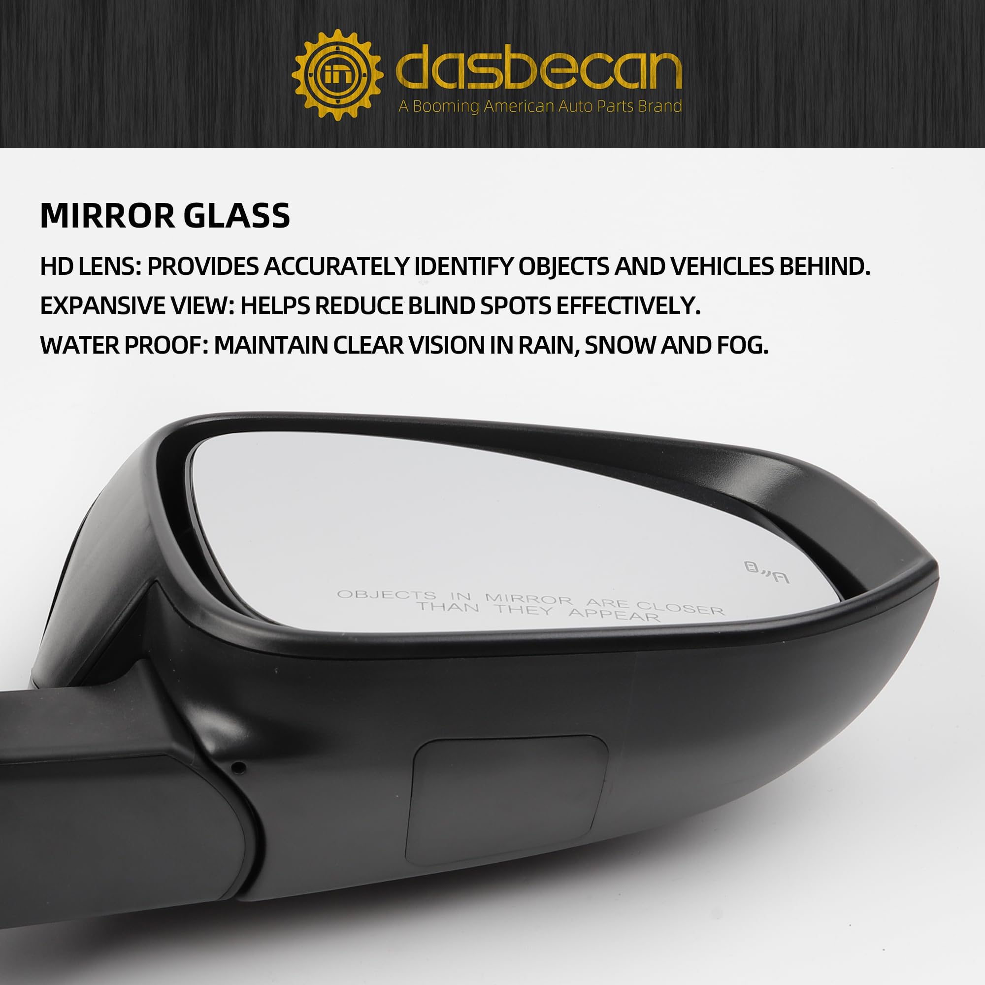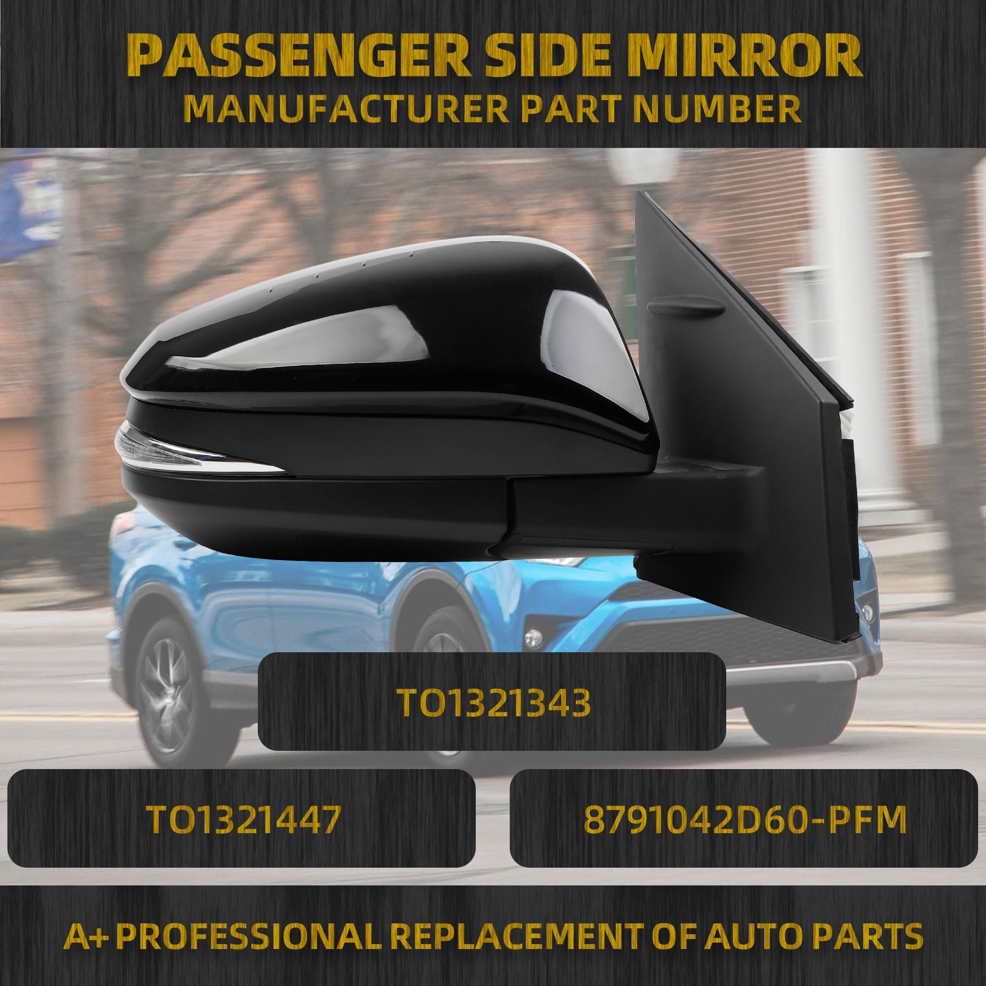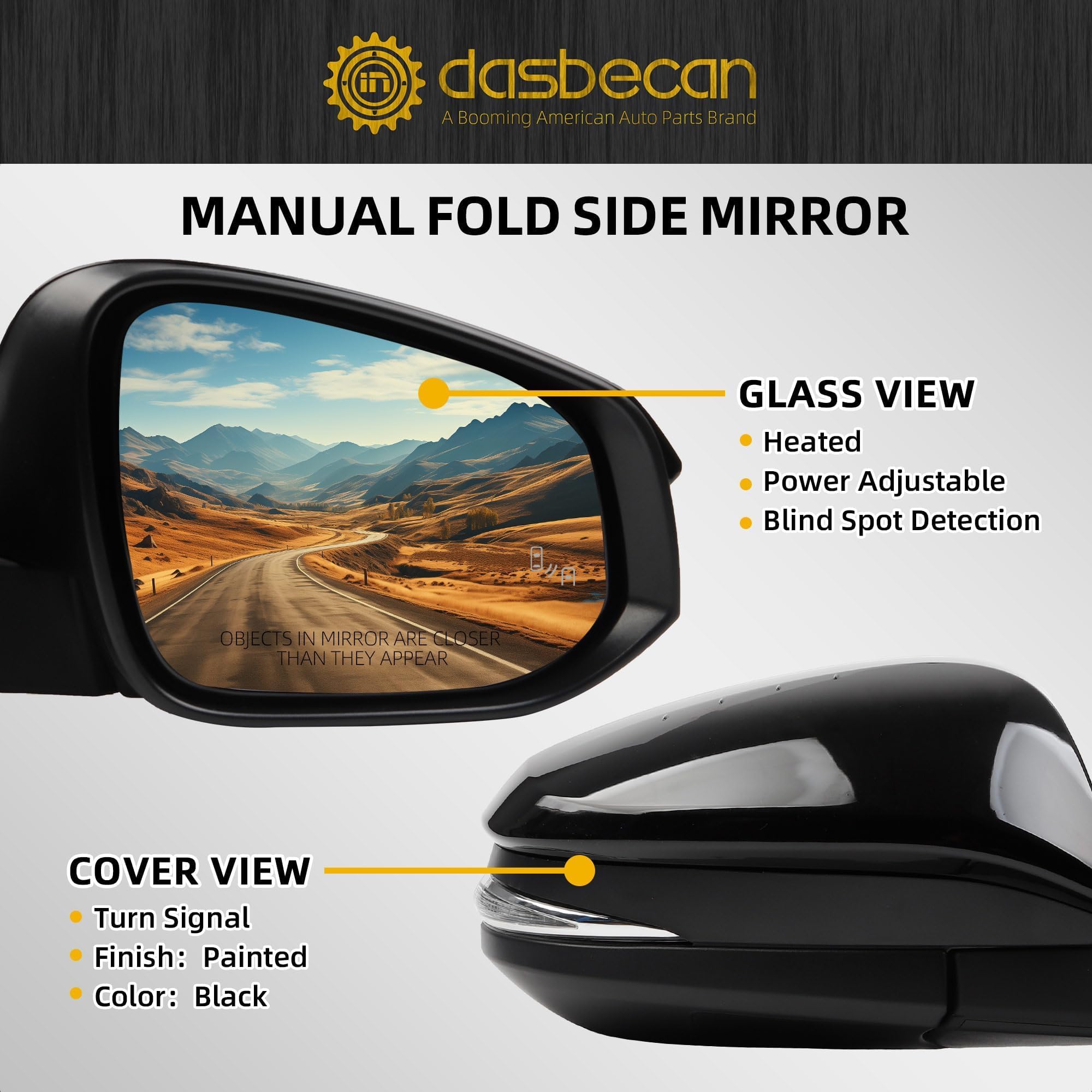 [Specification] Manual Folding, Power Adjustment on Glass, With Heated, With Turn Signal Light, With Blind Spot Detection BSD, Paint to Match Black Cover, 8 Pins Connector, Right Passenger Side RH