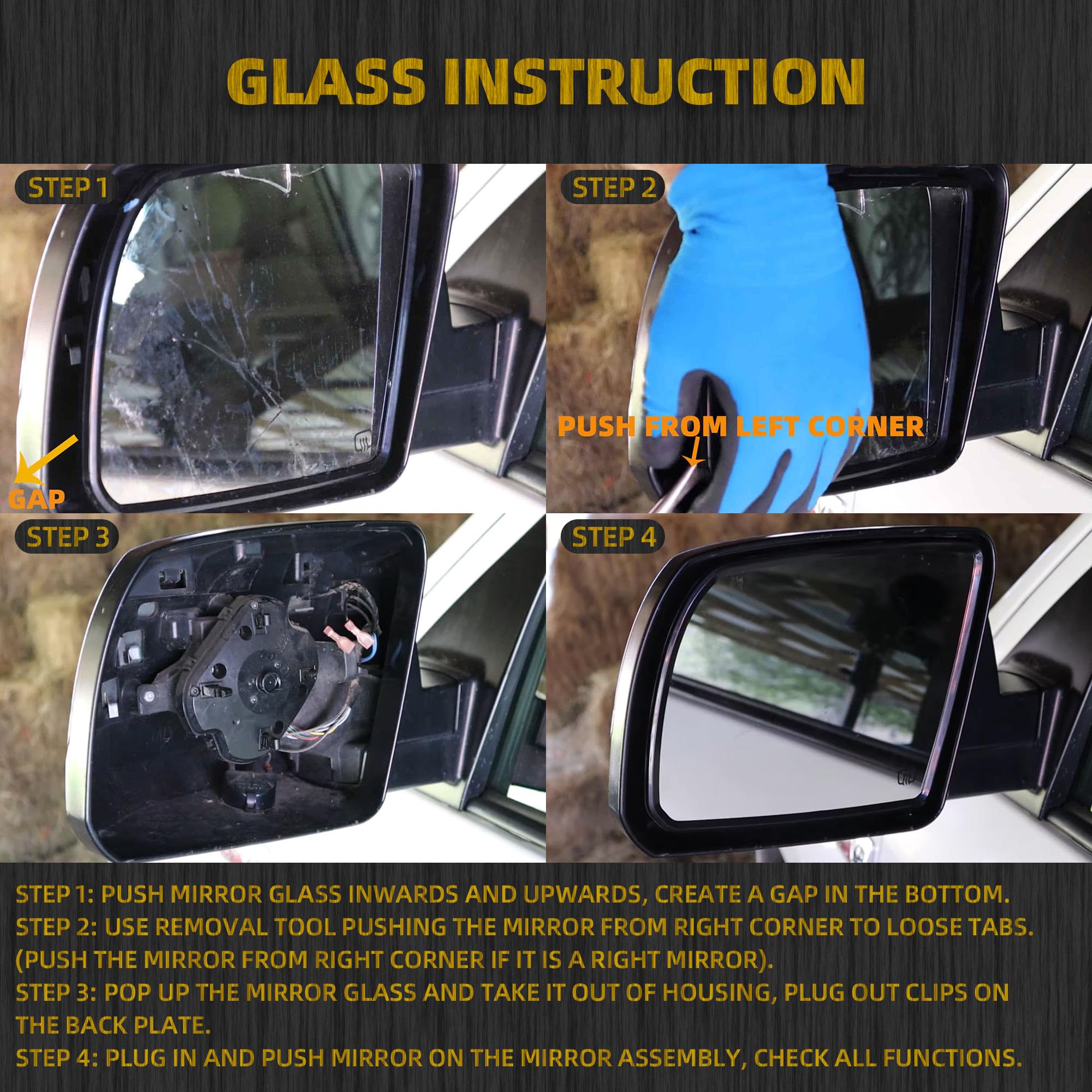 【Packaging List】Left Side Mirror Glass with Back Plate*1, Clips*2, Removal Tool*1, Not The Right Side View Mirror Assembly