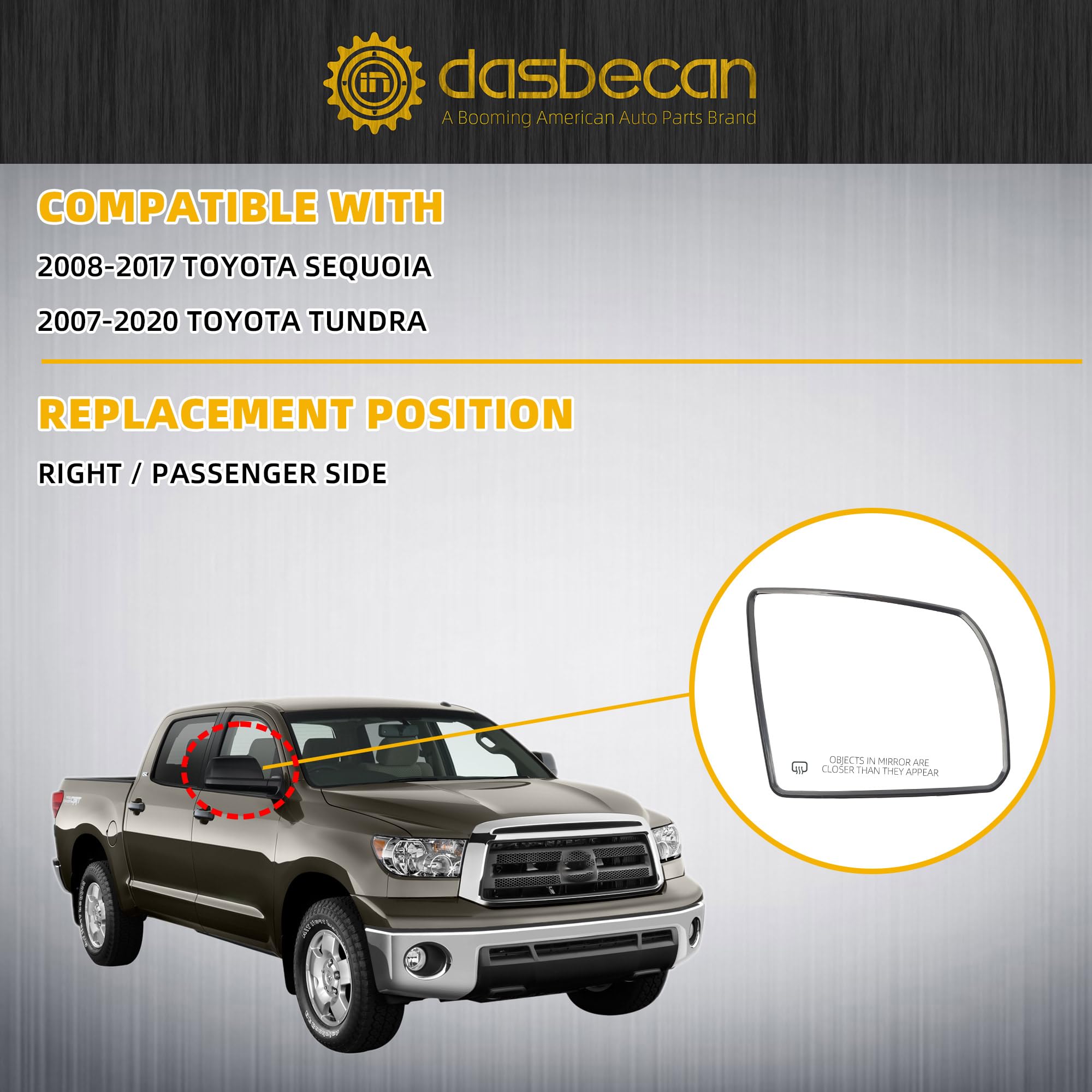 【Comaptible With】The Right Side Mirror Glass Compatible With 2008-2017 Toyota Sequoia; 2007-2020 Toyota Tundra