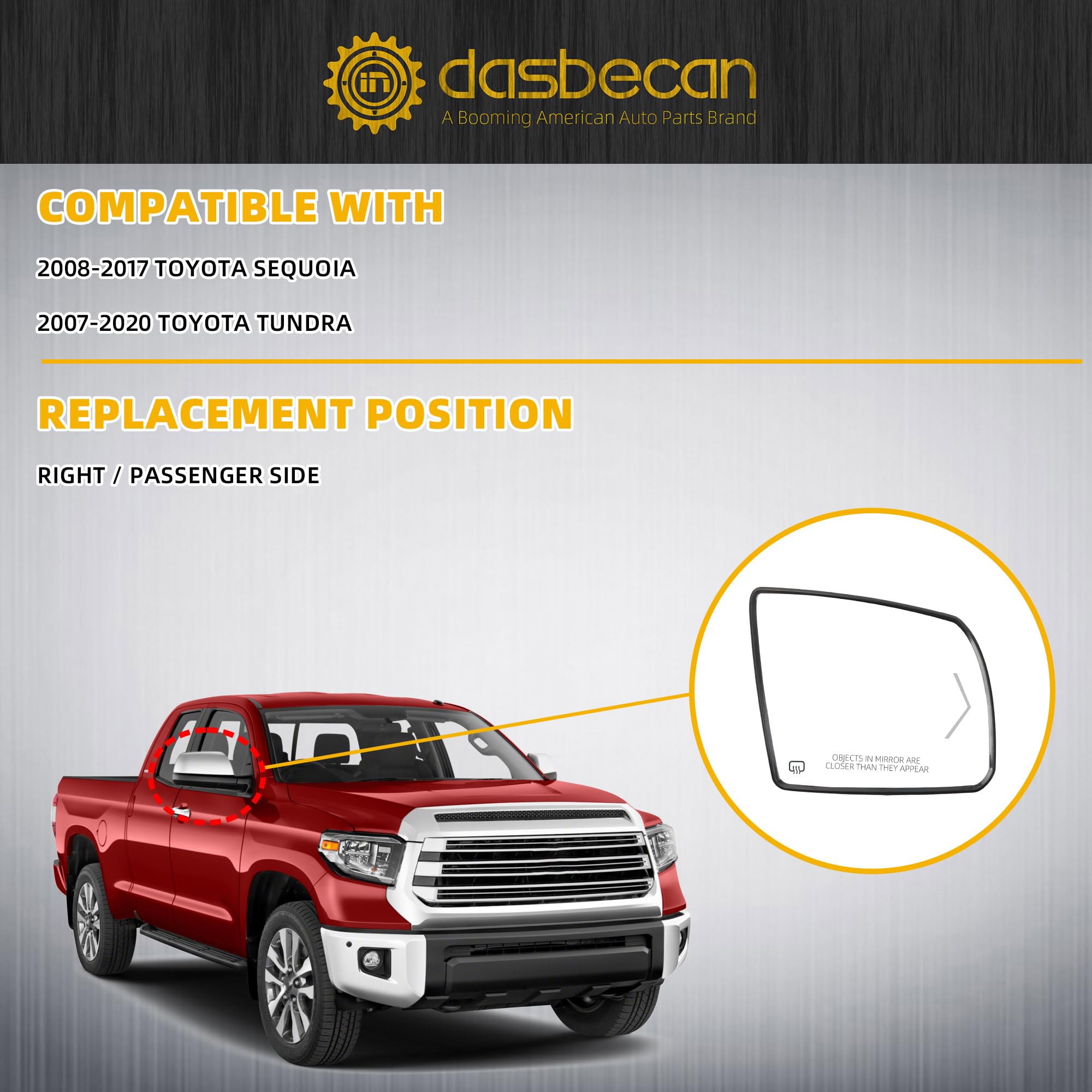 【Comaptible With】The Side Mirror Glass Compatible With 2008-2017 Toyota Sequoia; 2007-2020 Toyota Tundra