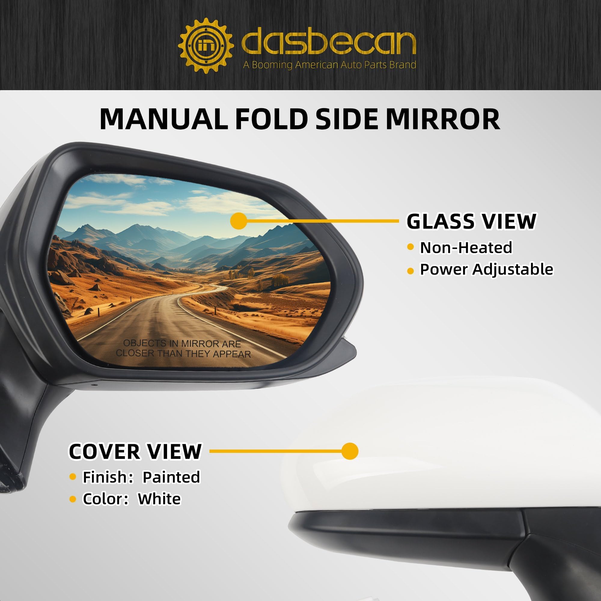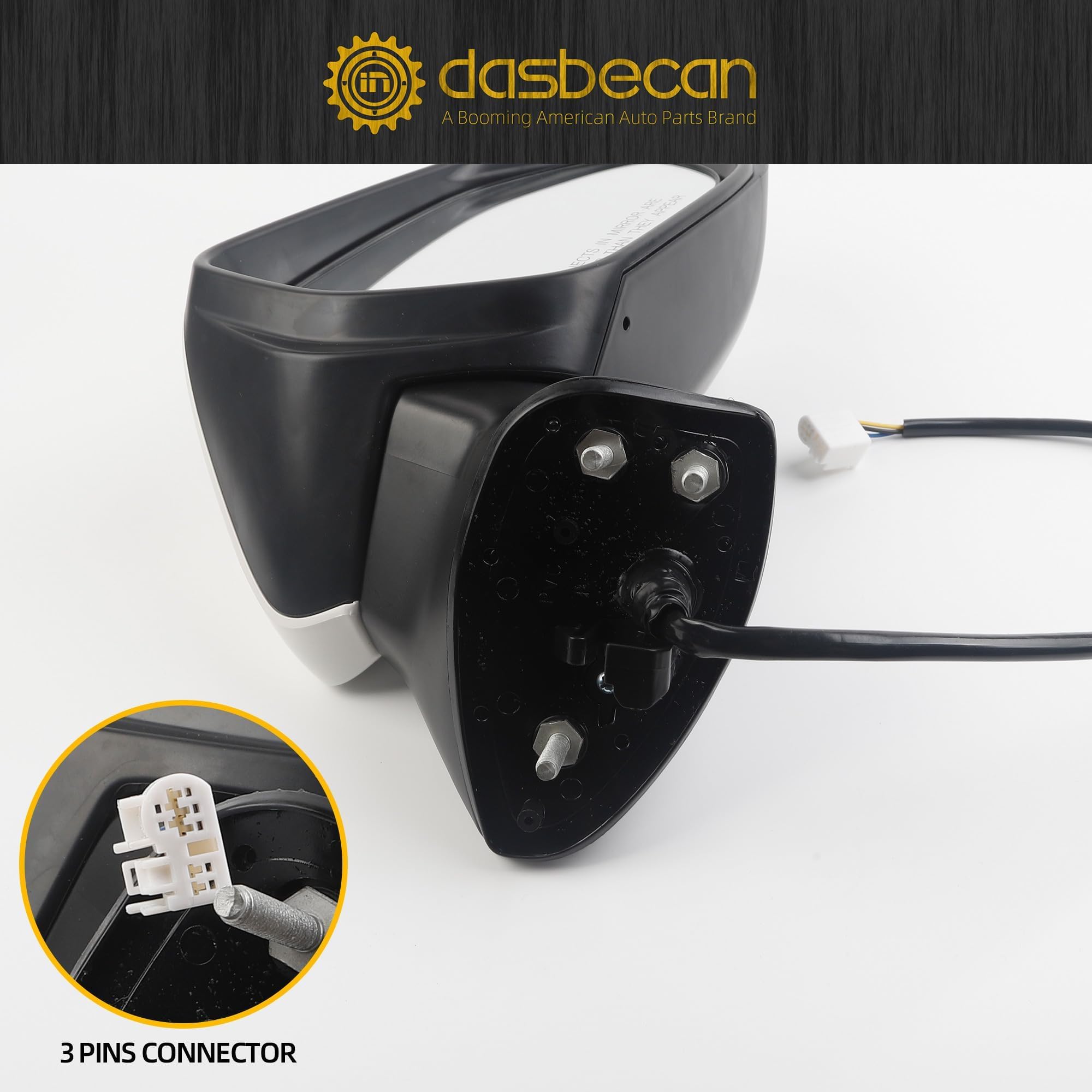 [Specifications] Position: Front Right Passenger Side; Color: White ( Paint to Match ) ; Plug Configuration: 3 Wires/Pins. Fuction: Manual Folding, power Adjustment.