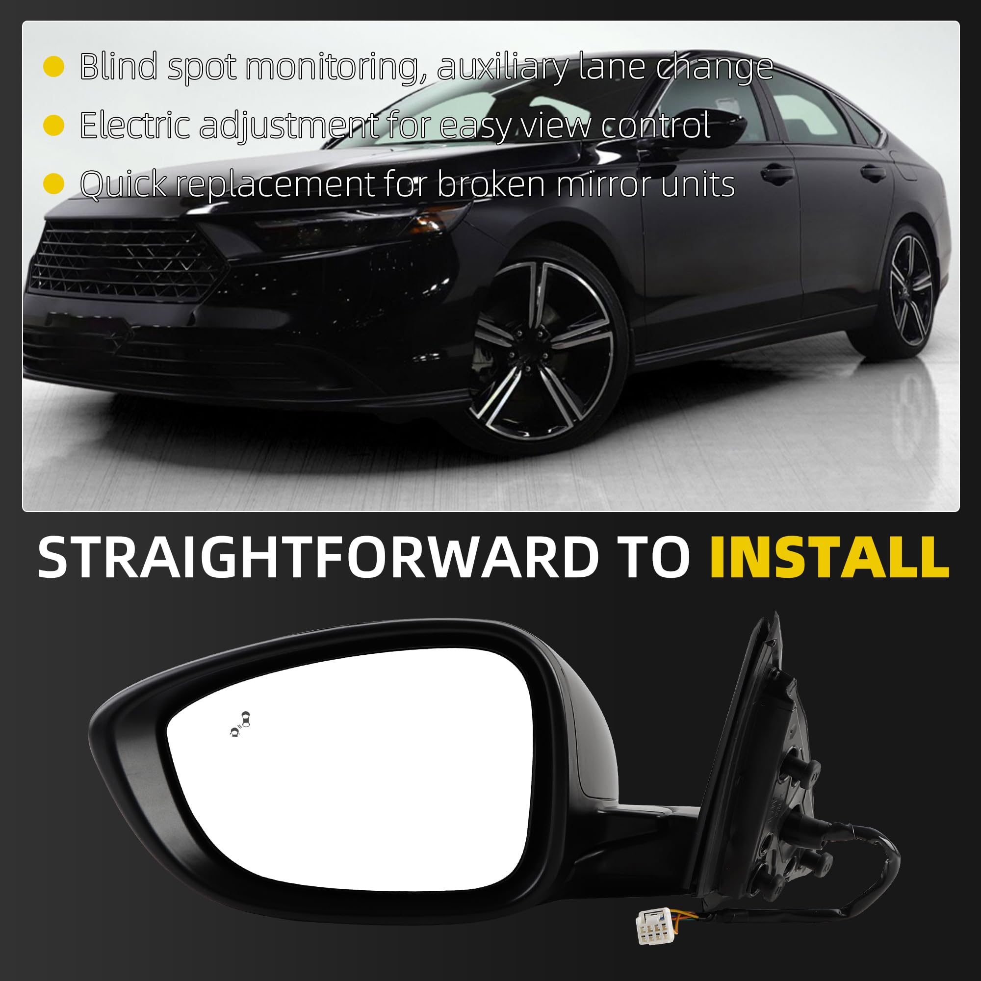 [Fitment] The Side Mirror Black is compatible with 2023 2024 2025 2026 Honda Accord.