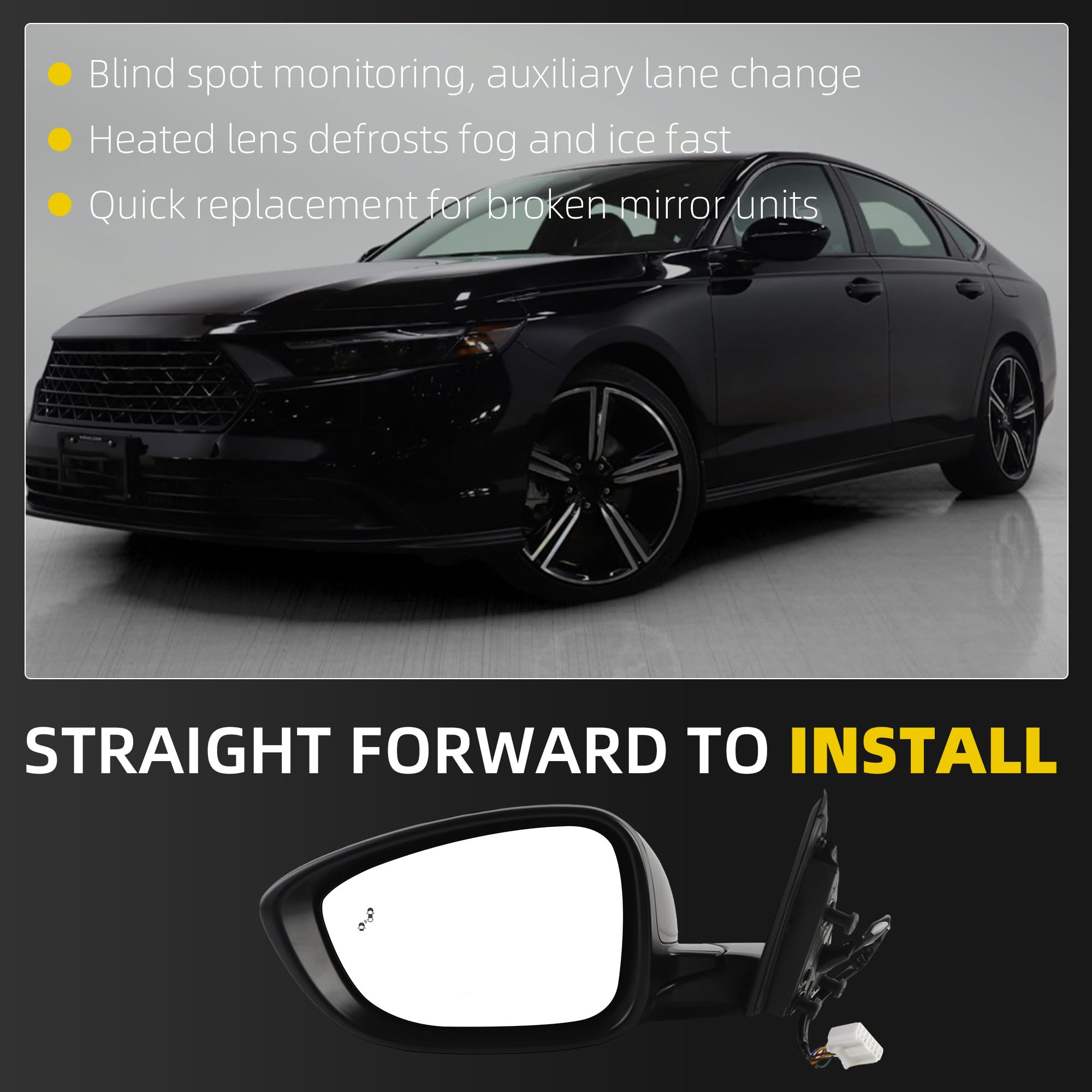 [Fitment] The Side Mirror Black is compatible with 2023 2024 2025 2026 Honda Accord.
