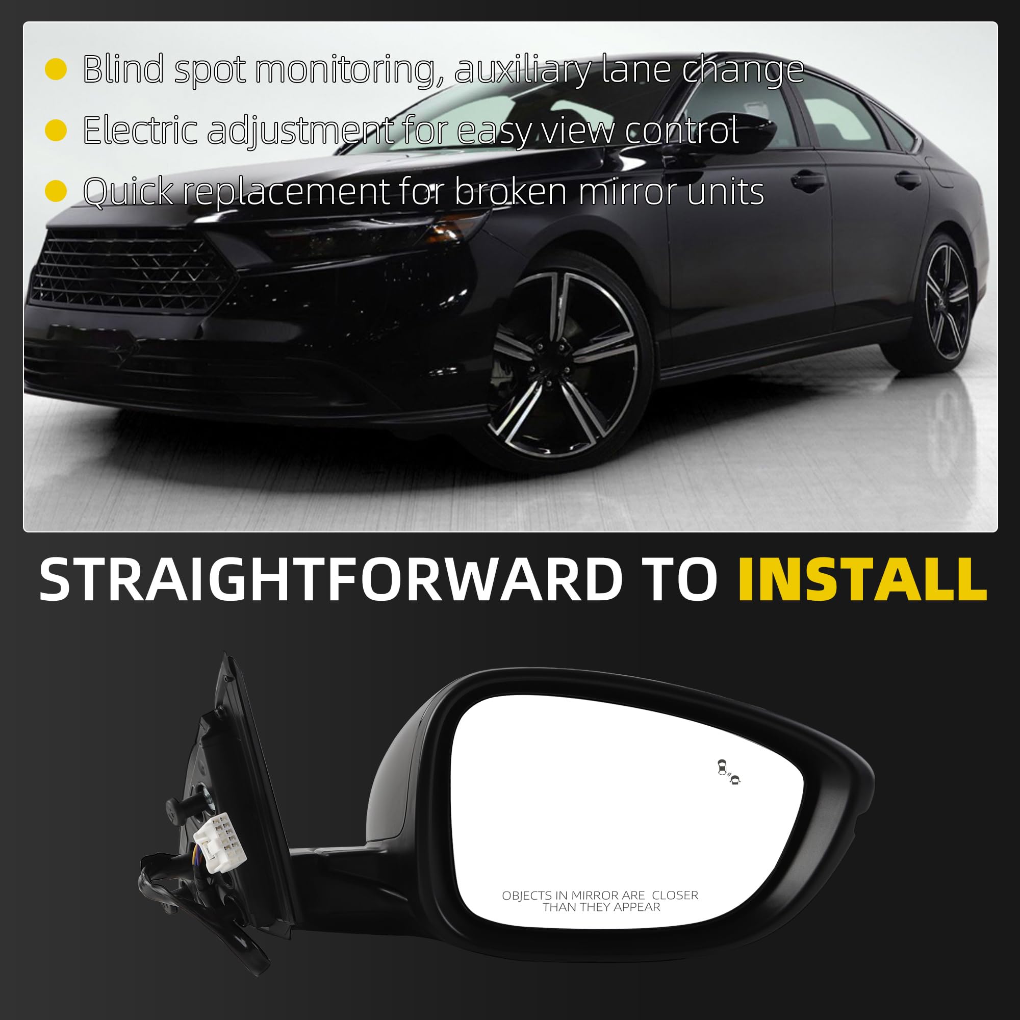 [Fitment] The Side Mirror Black is compatible with 2023 2024 2025 2026 Honda Accord.