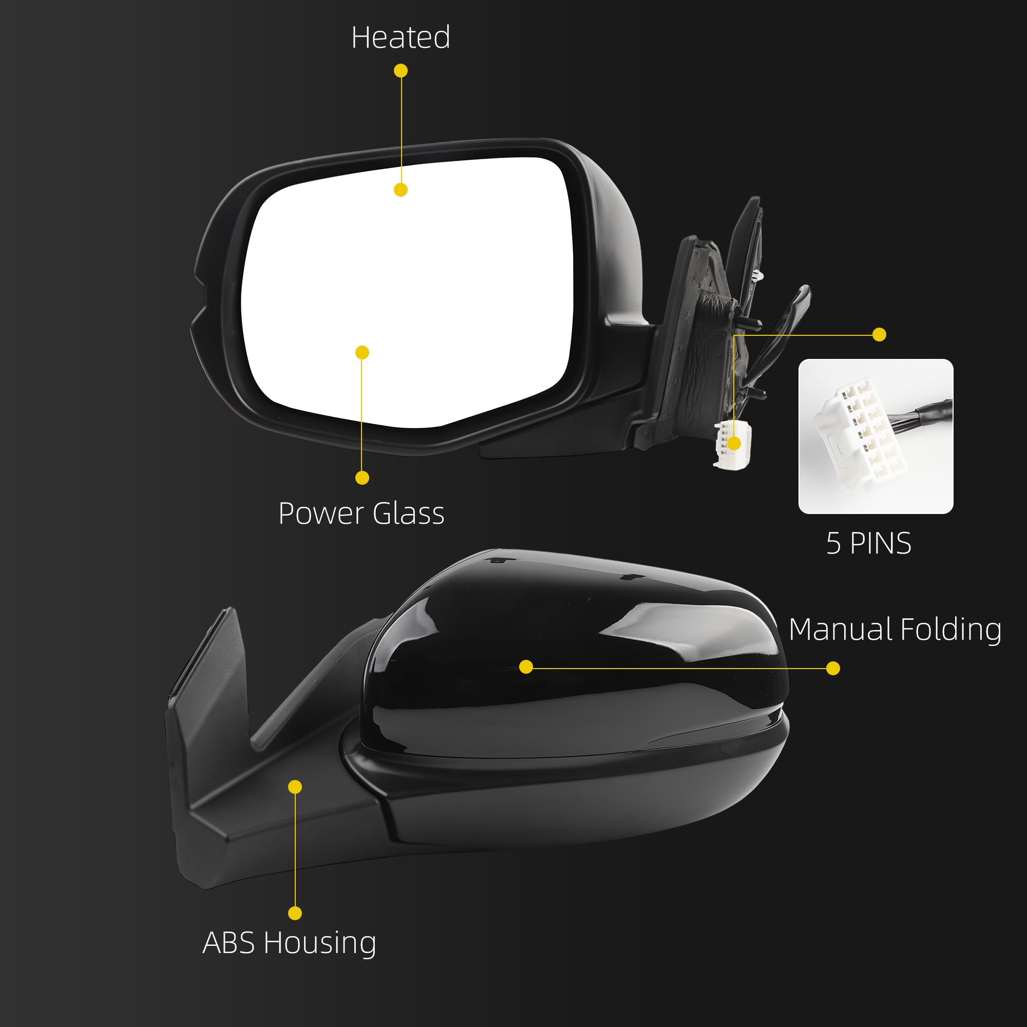 Features:The left mirror is equipped with Heated,Manual Folding,Power Glass,5 PINS,ABS Housing,plug and play,easy installation.