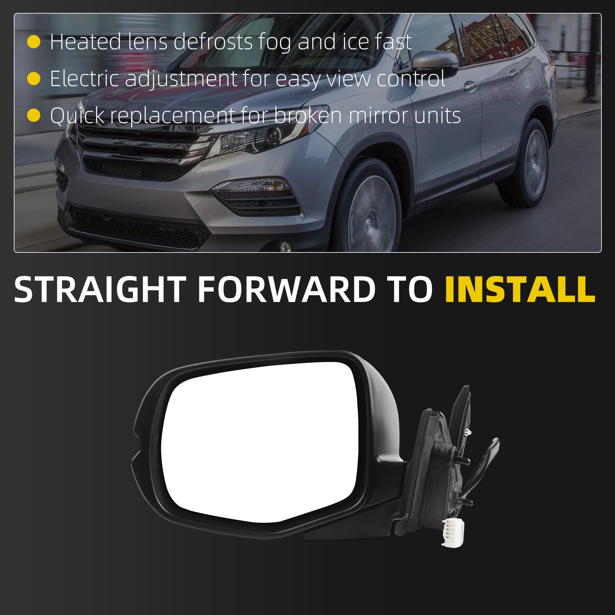 Fitment:The side rear view mirror compatible with 2016 2017 2018 2019 2020 2021 2022 Honda Pilot.