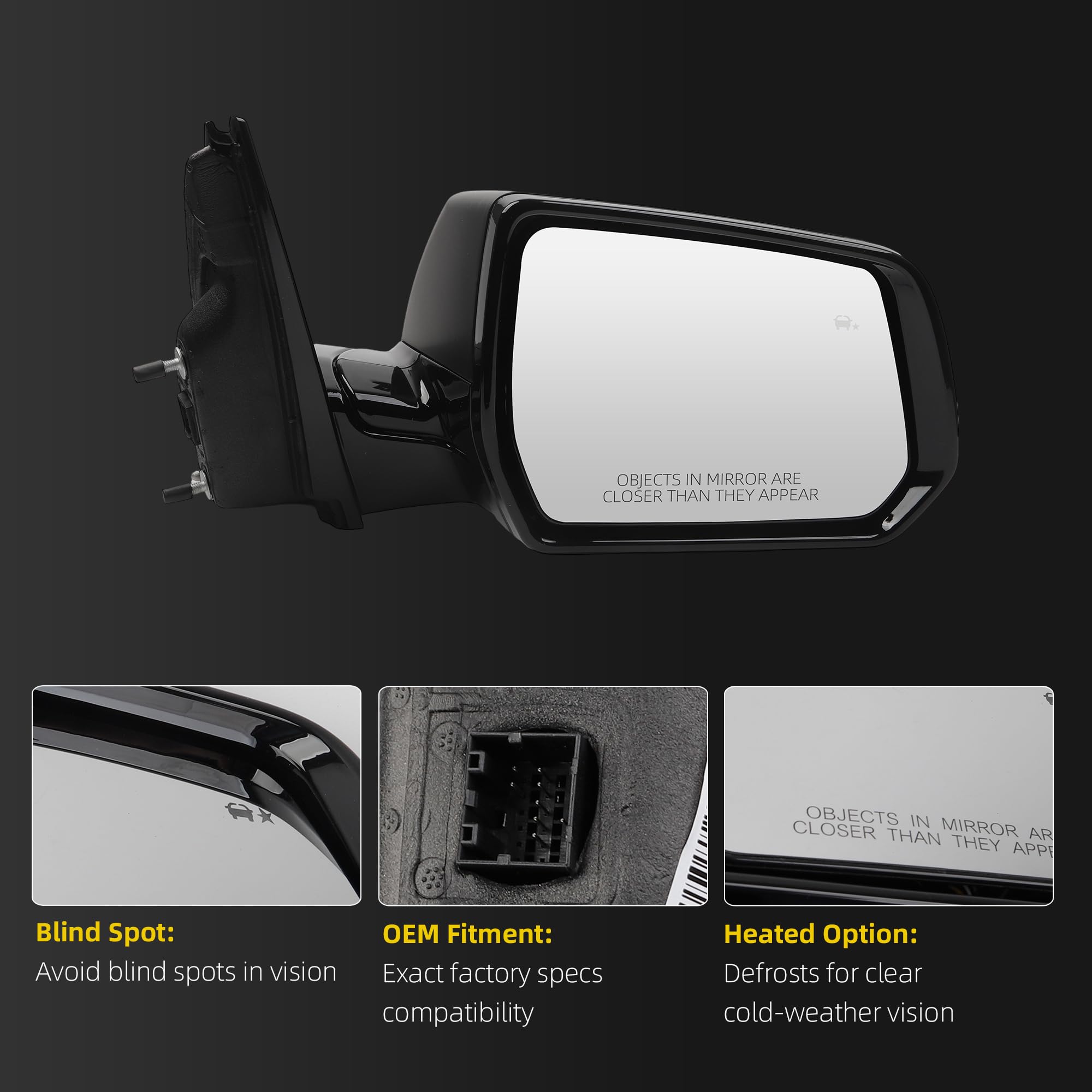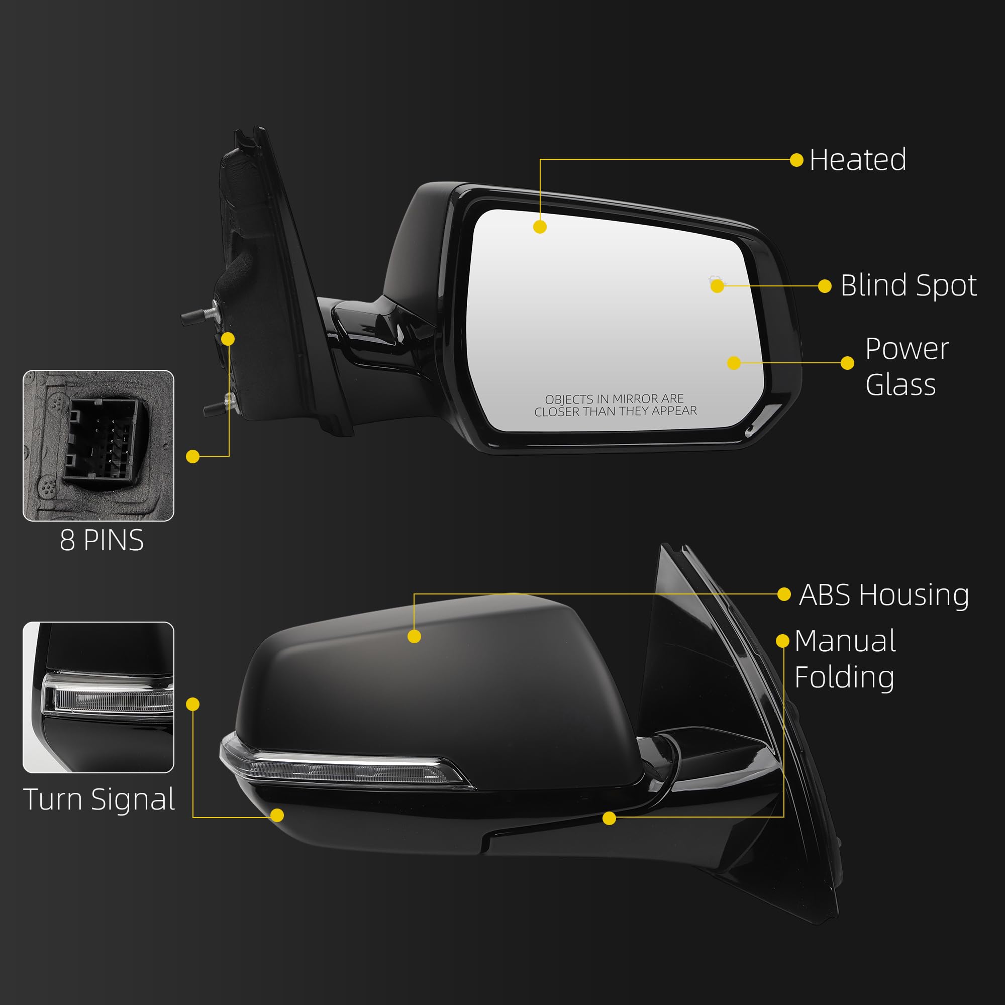 Features:The right mirror is equipped with power heated,high-quality glass,8pins,ABS housing,blind spot,plug and play,easy installation.