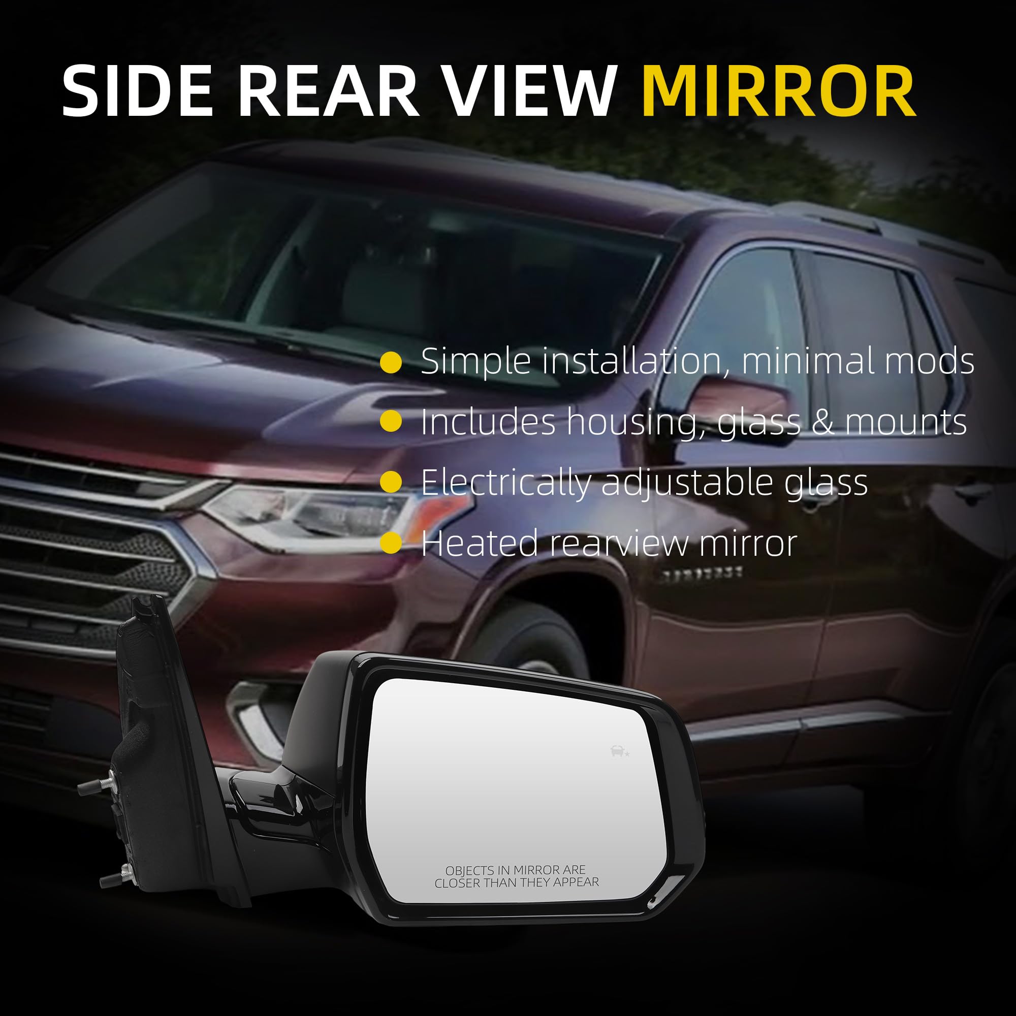 Fitment:The side rear view mirror compatible with 2018 2019 Chevrolet Traverse LT.