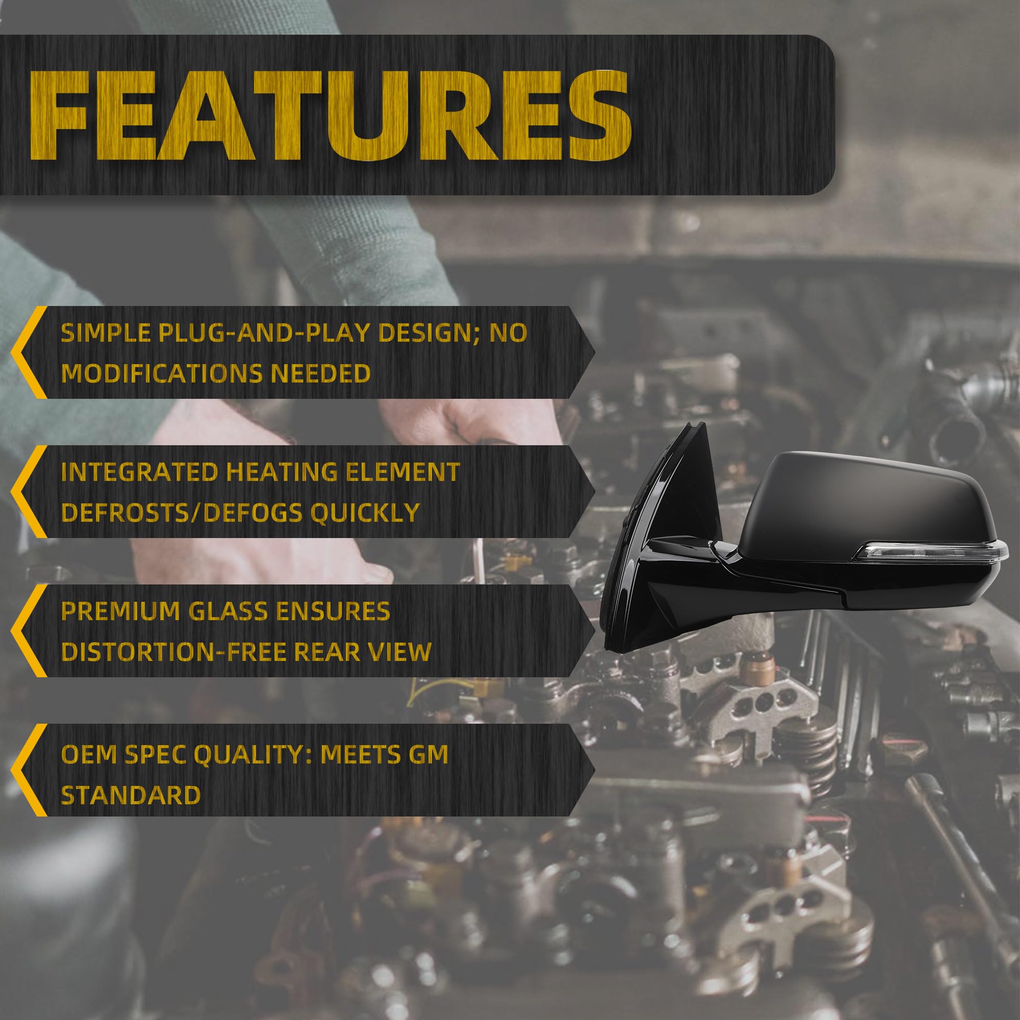 Fitment:The side rear view mirror compatible with 2018 2019 Chevrolet Traverse LT.