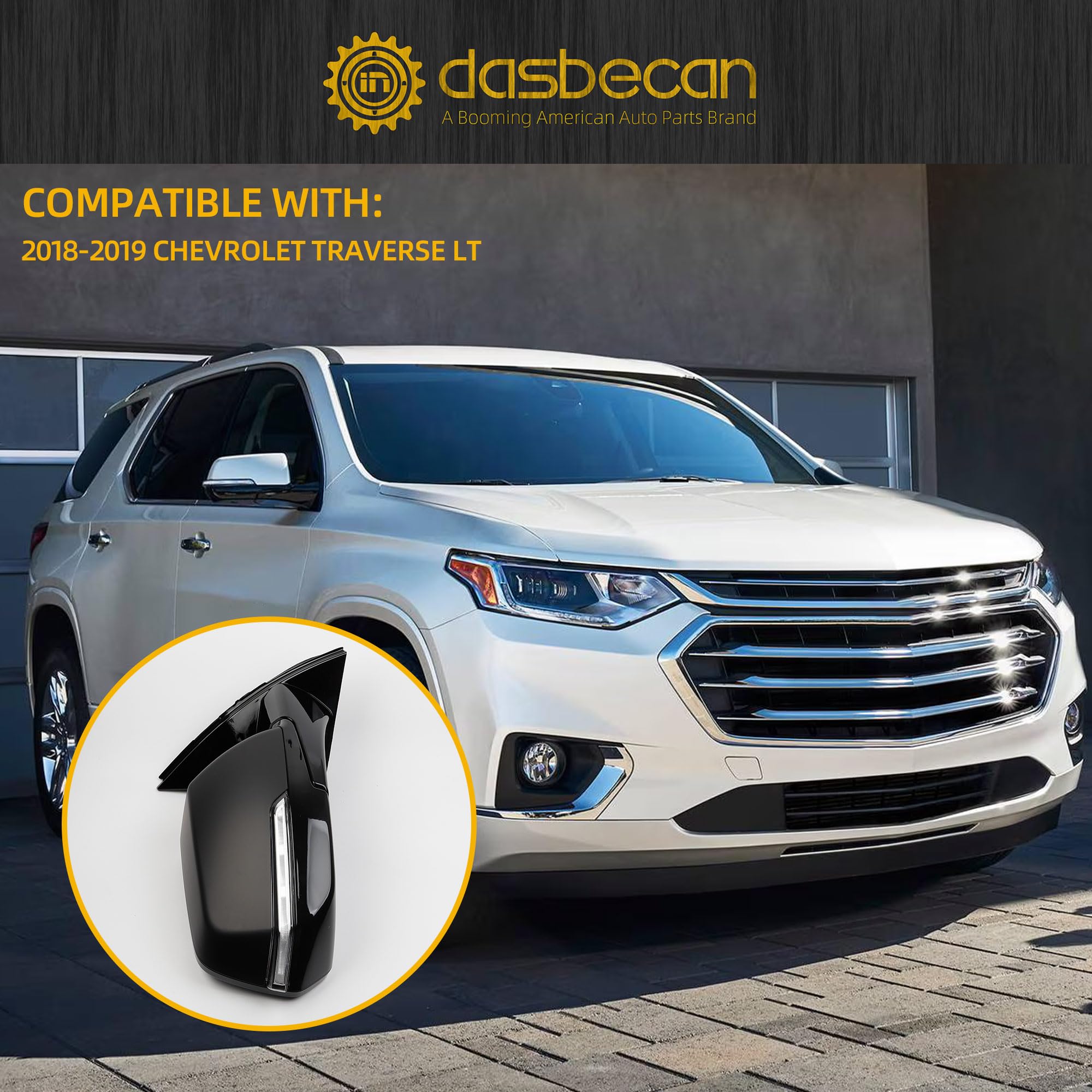Fitment:The side rear view mirror compatible with 2018 2019 Chevrolet Traverse LT.