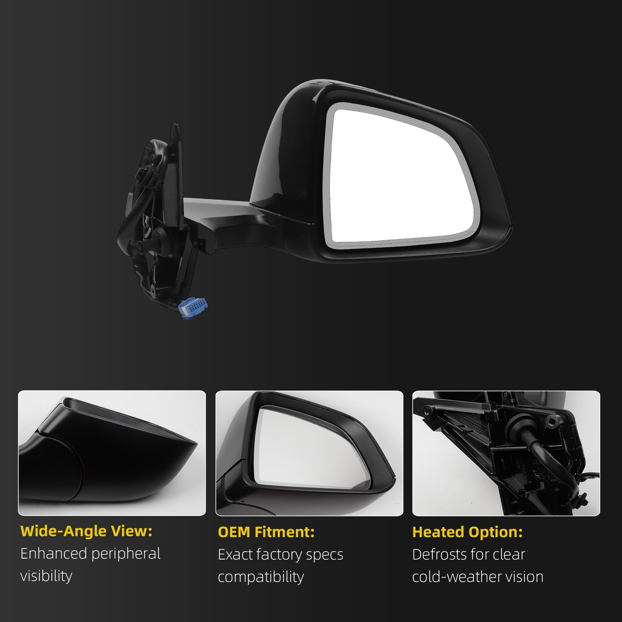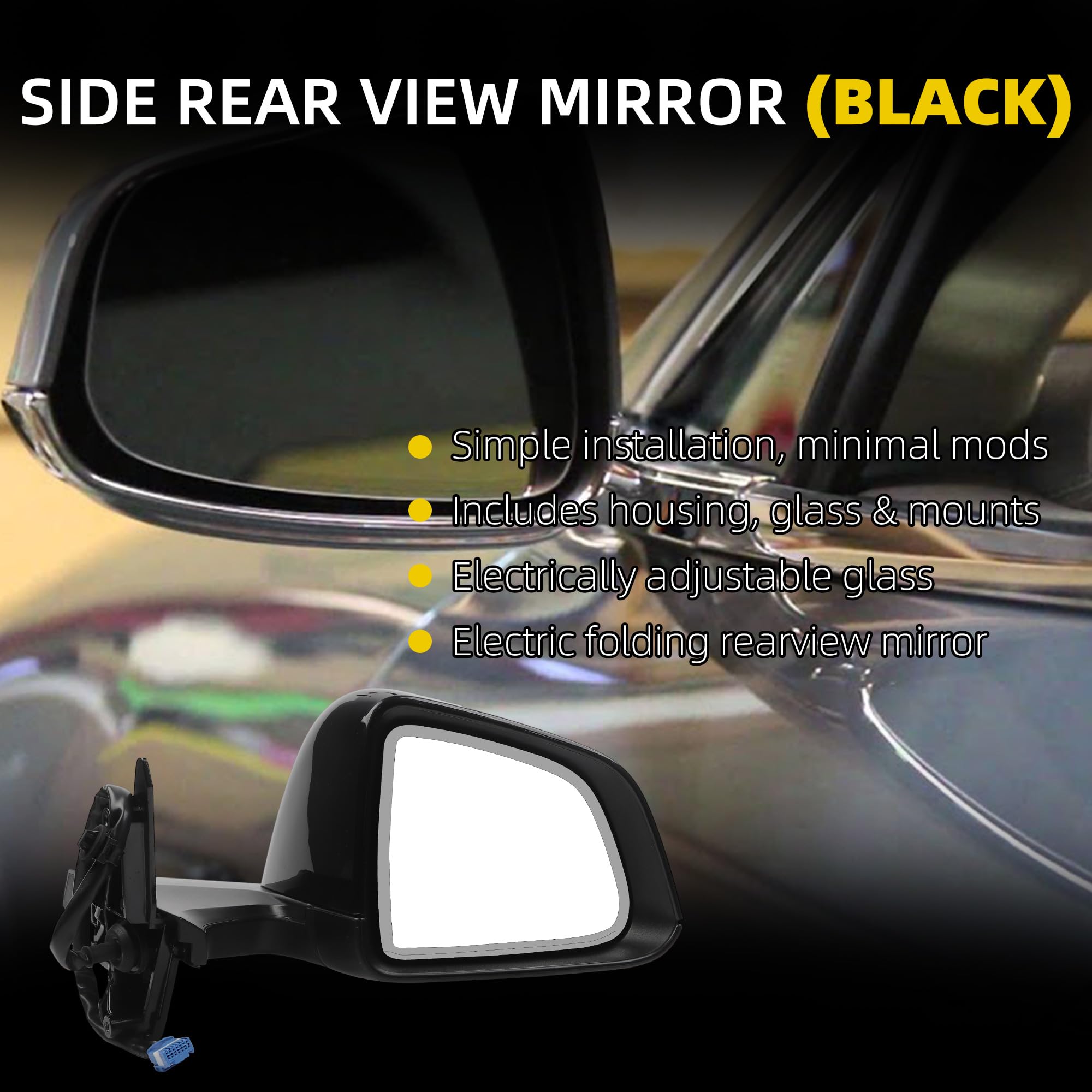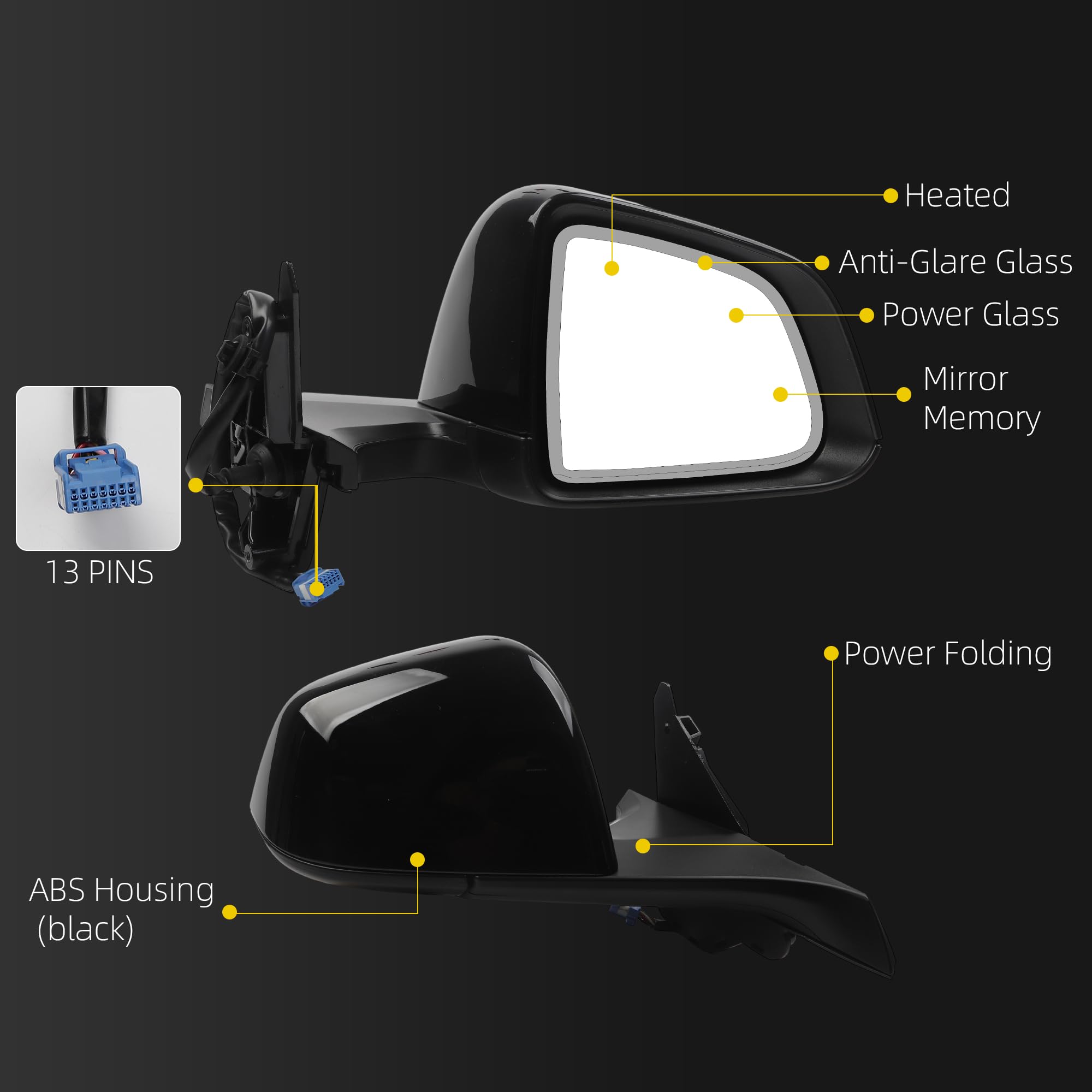 Features:The right mirror is equipped with power heated,high-quality glass,anti-glare glass,mirror memory,power folding,13pins,plug and play,easy installation.