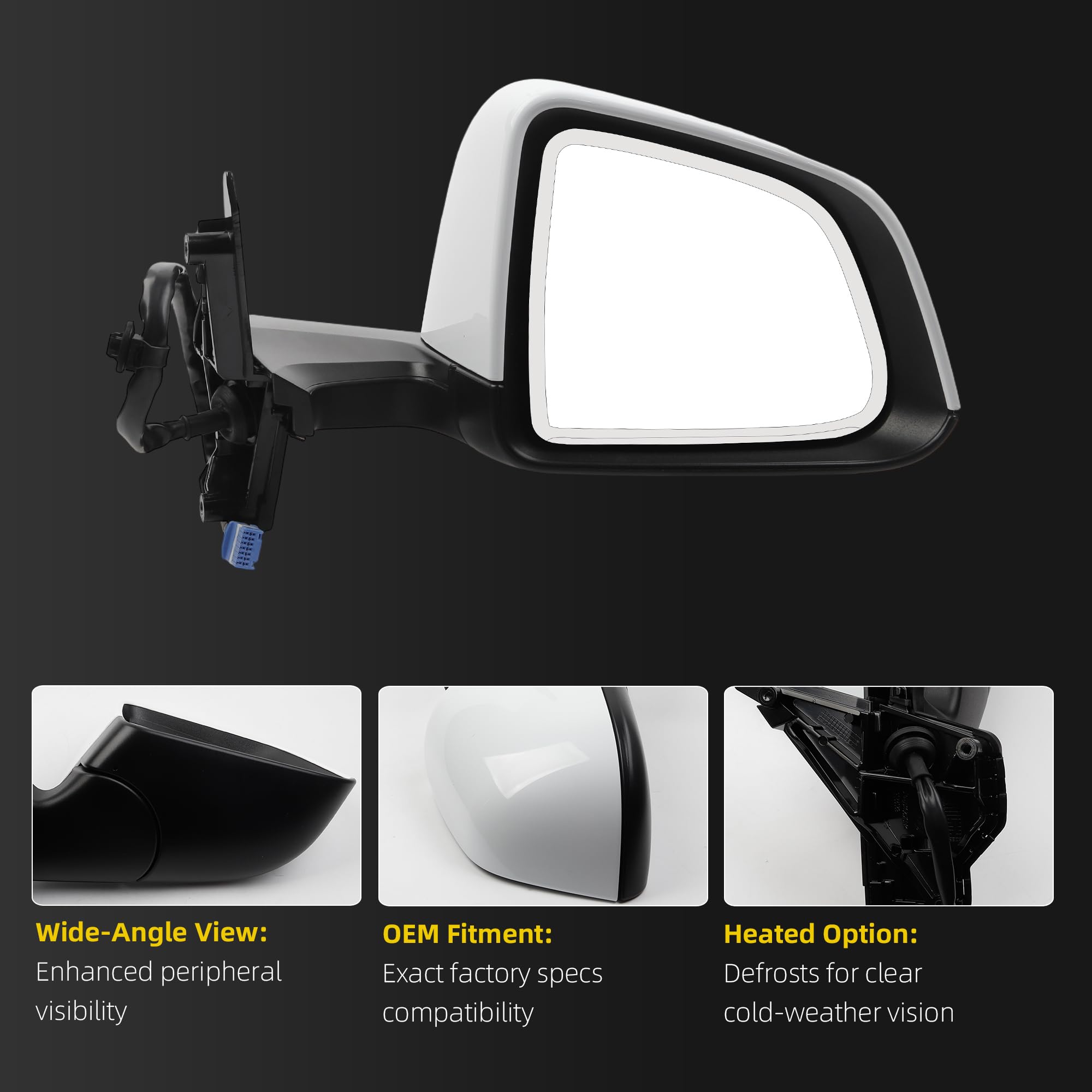 Features:The right mirror is equipped with power heated,high-quality glass,anti-glare glass,mirror memory,power folding,13pins,plug and play,easy installation.