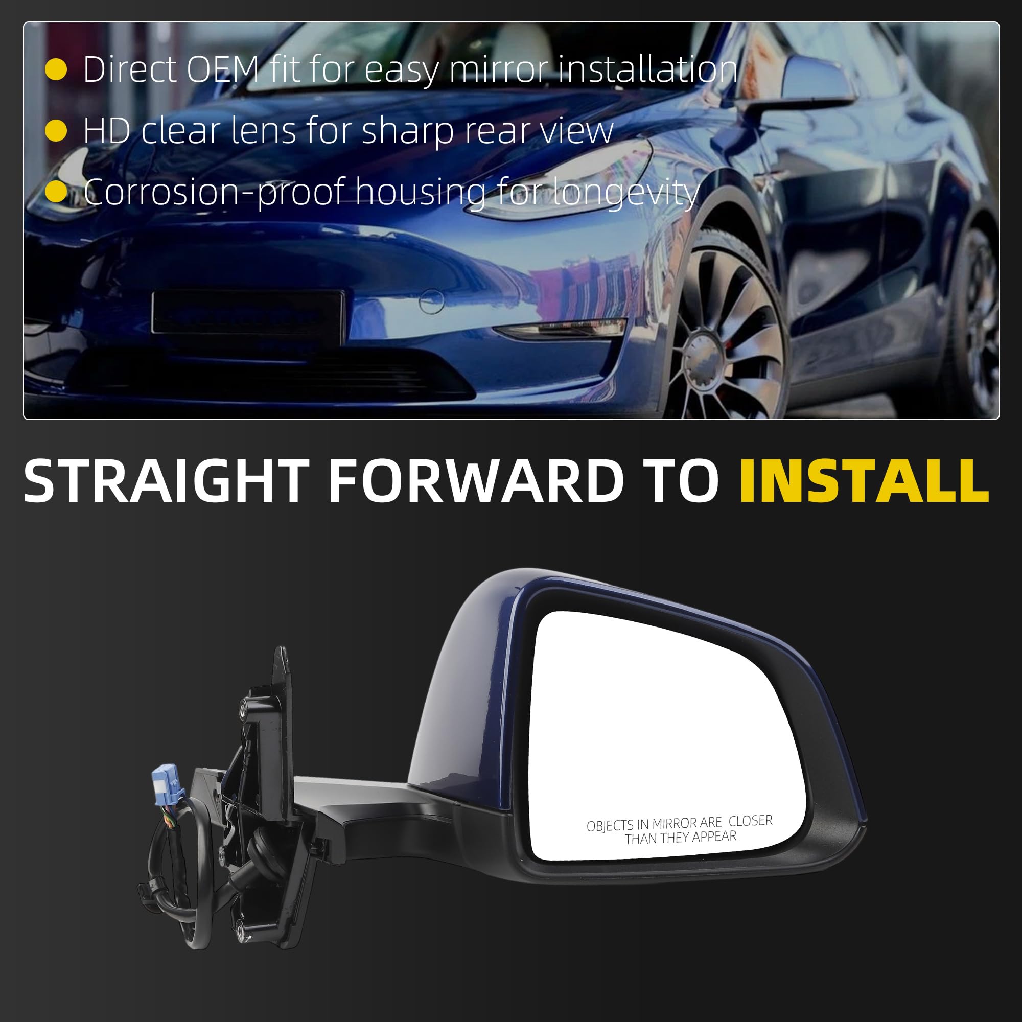 Fitment:The side rear view mirror compatible with 2020-2024 Tesla Model Y.