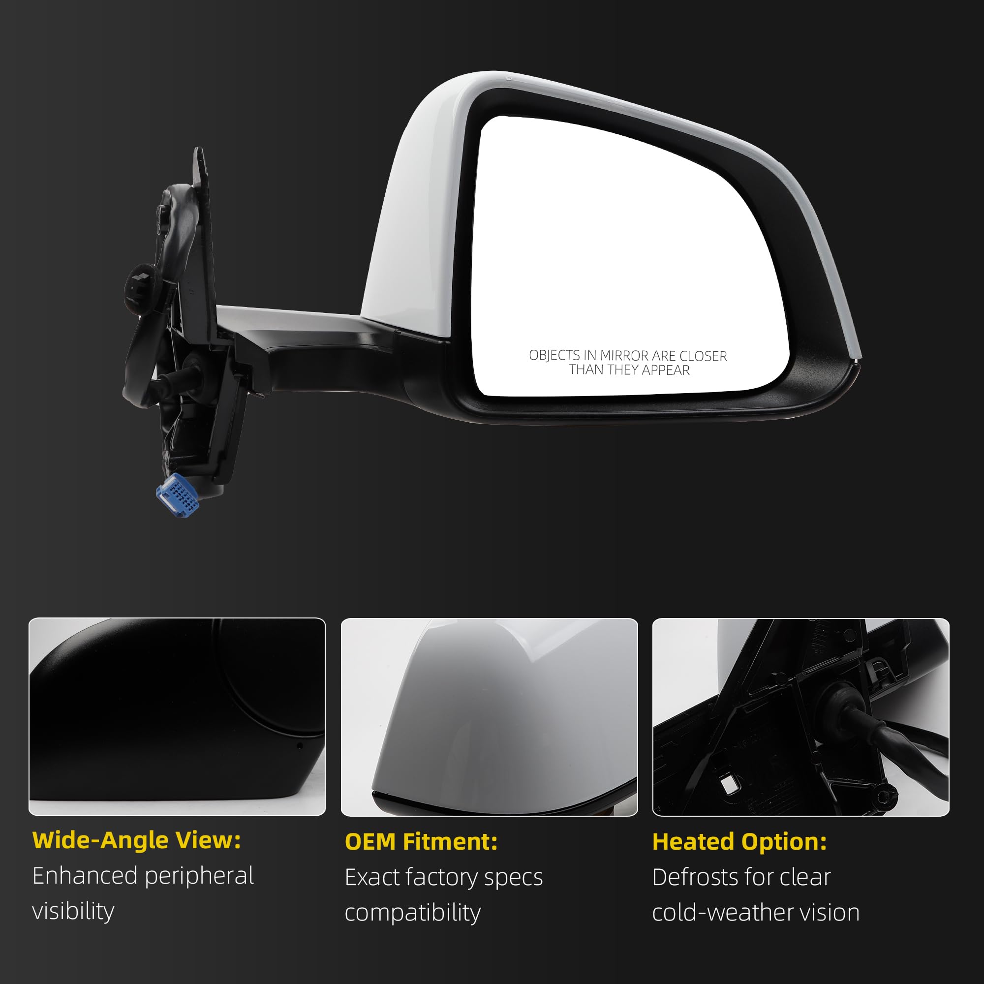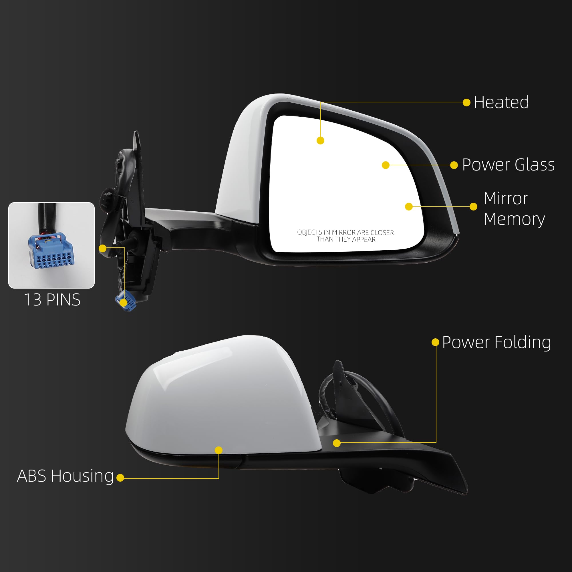 Features:The right mirror is equipped with power heated,high-quality glass,mirror memory,power folding,13pins,plug and play,easy installation.
