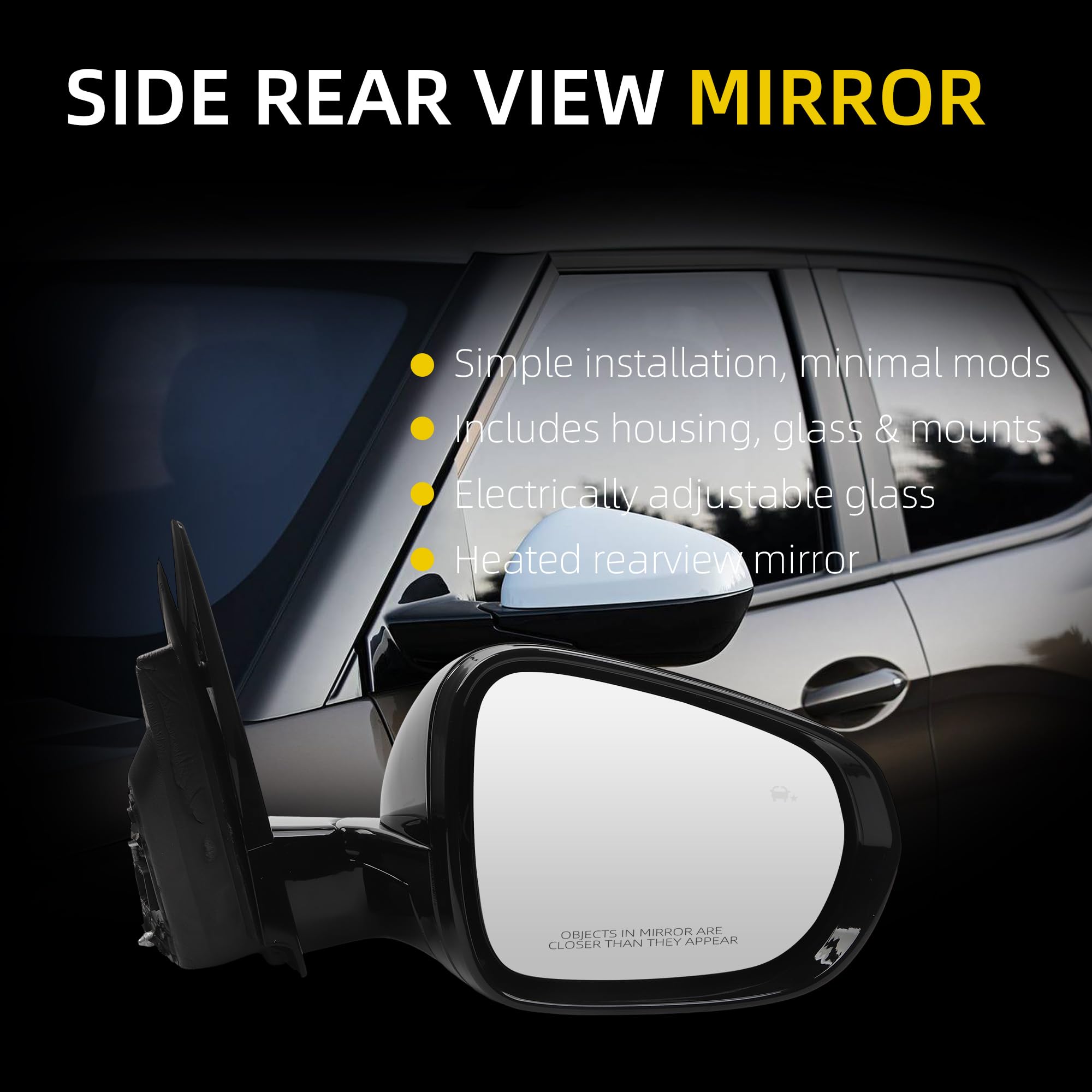 Fitment:The side rear view mirror compatible with 2021 2022 2023 2024 Chevrolet Trailblazer.