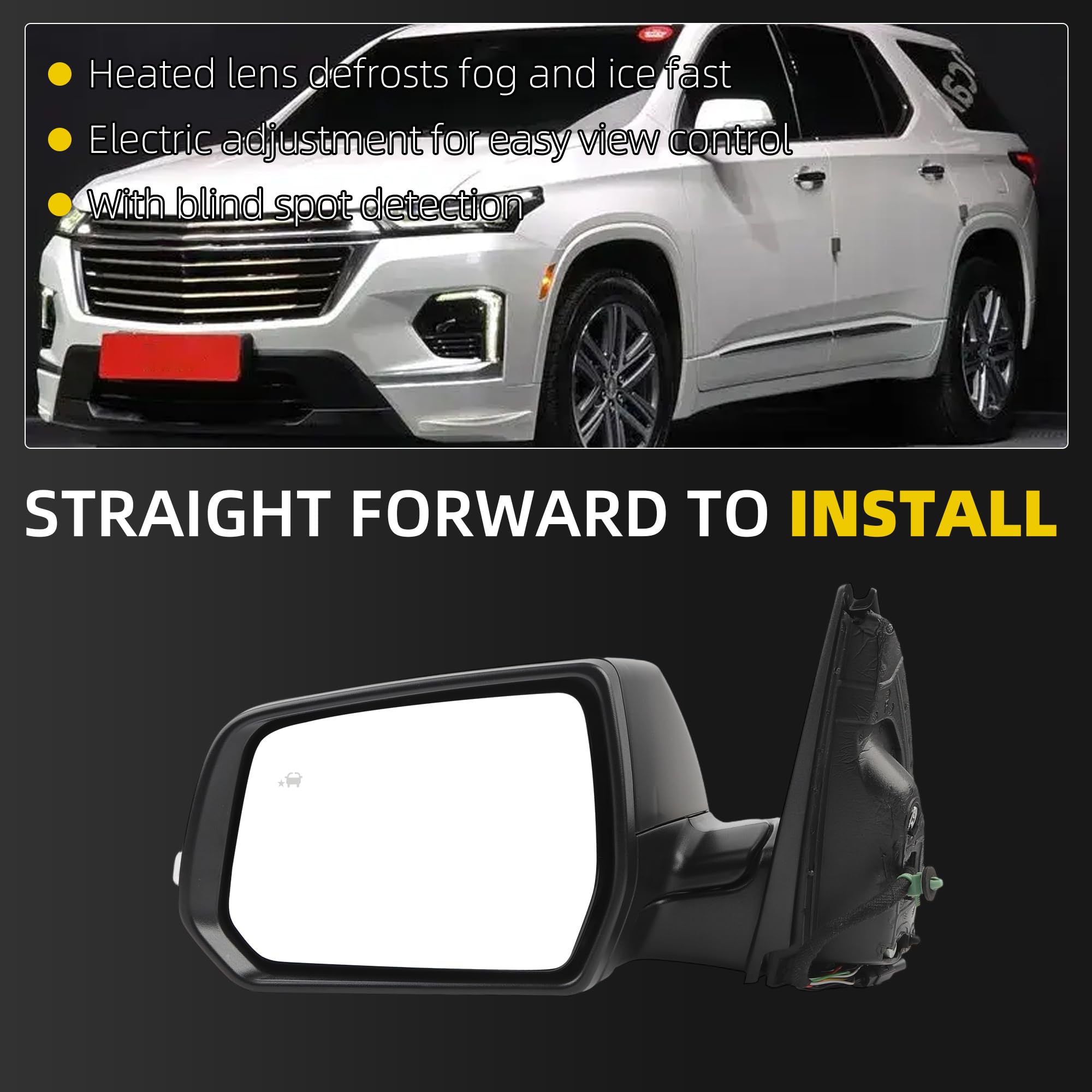 Fitment:The side rear view mirror compatible with 2022 2023 Chevy/Chevrolet Traverse LT.