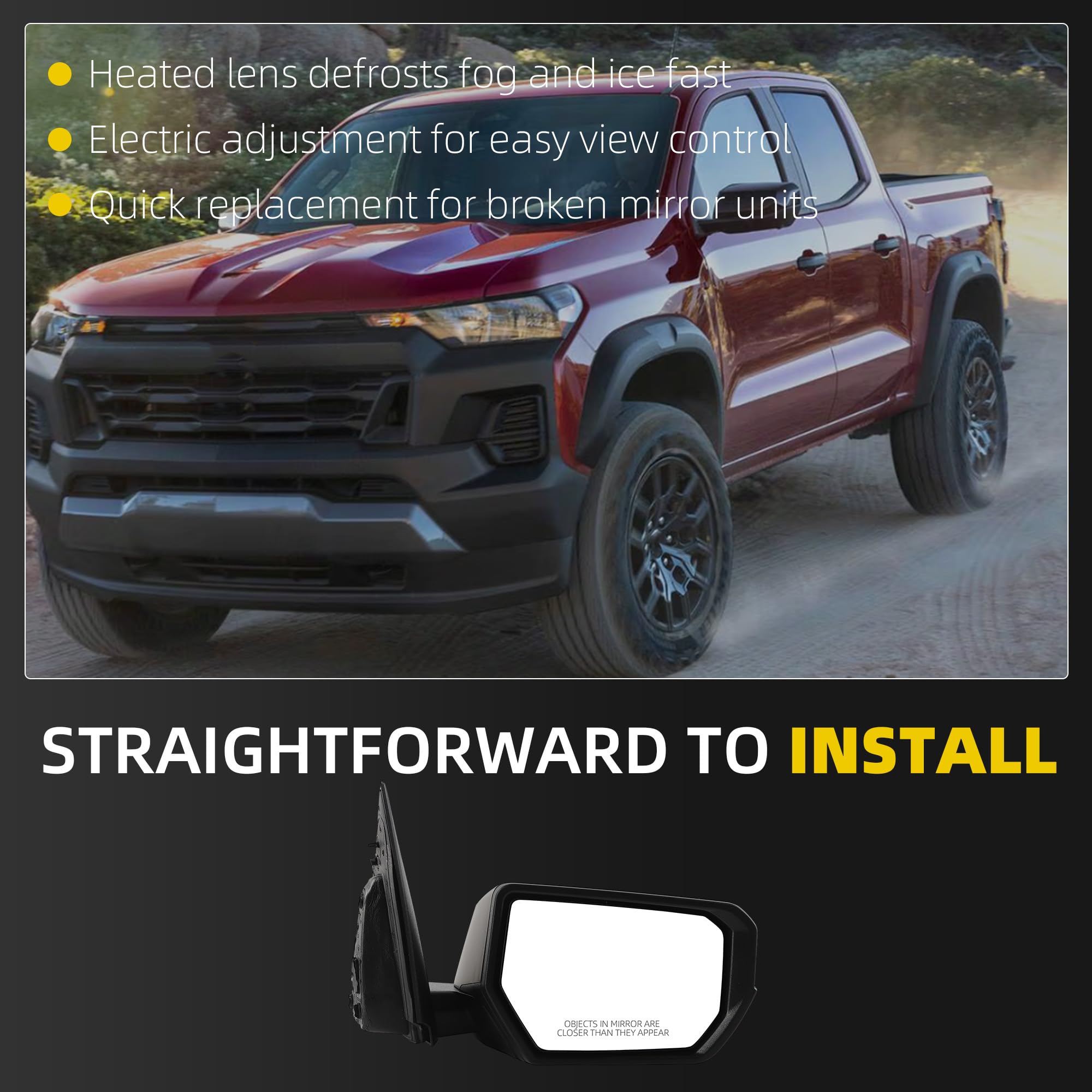 [Fitment]The side rear view mirror compatible with 2023 2024 2025 2026 Chevy Colorado