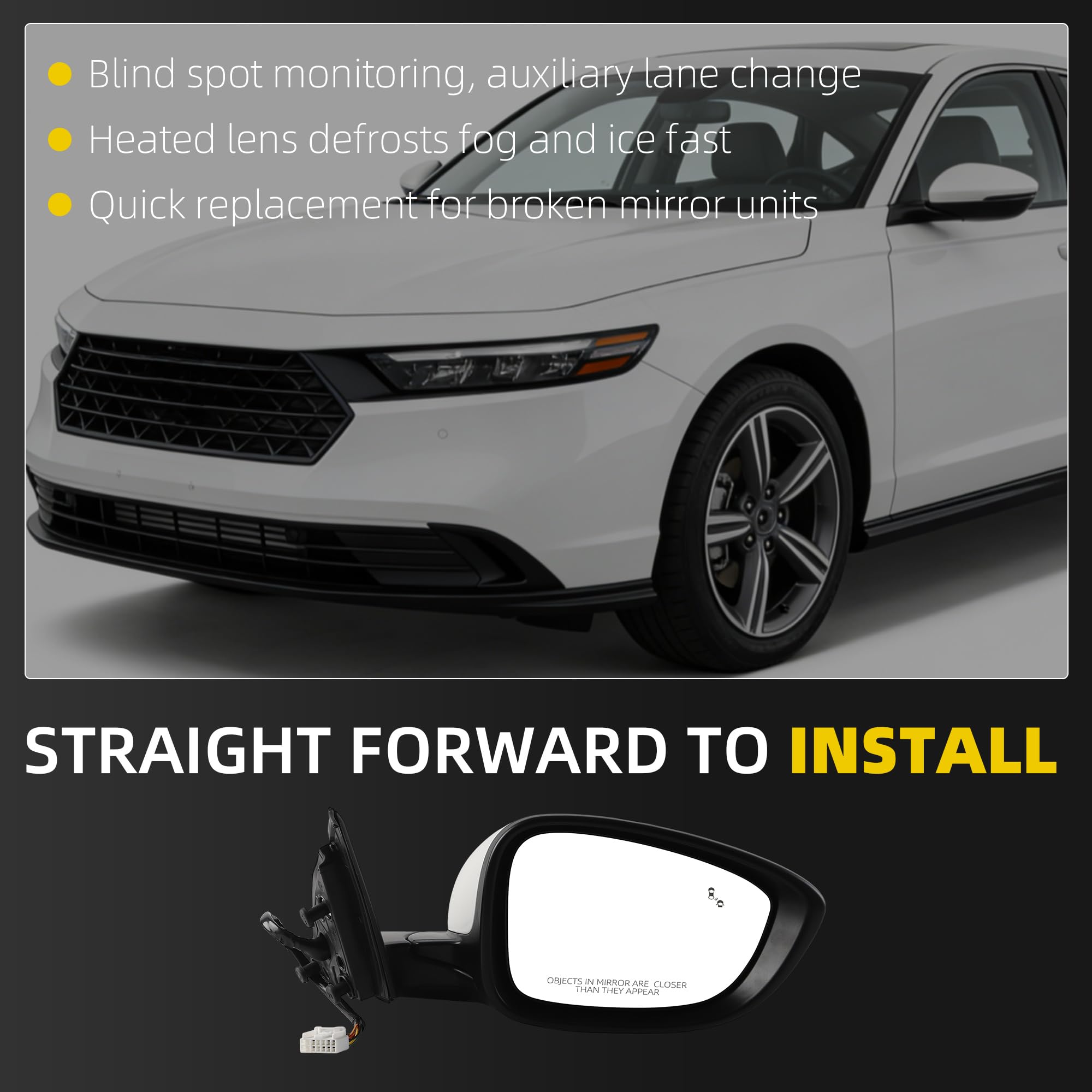 [Fitment] The Door Mirror is compatible with 2023 2024 2025 2026 Honda Accord.