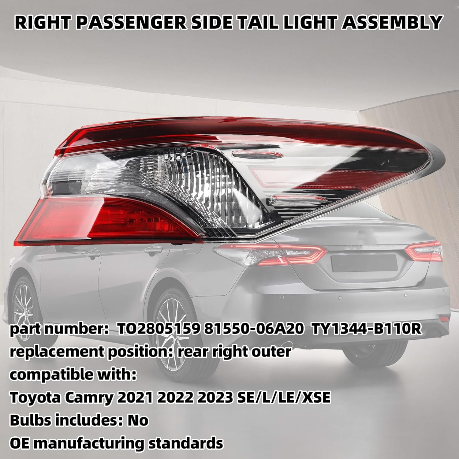 【Comaptible With】The Right TailLight Assembly Compatible With 2021 2022 2023 Toyota Camry TRD/ SE / L / LE / XSE, And Hybrid TRD/ SE / L / LE / XSE. (No Halogen Bulbs)