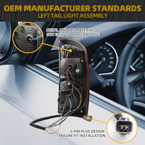 【Note】1.The Passenger Side Taillight Is Equipped With Wiring Only, No Bulbs Includes 2. Plug & Play, 5 Pins Plug, No Modification Needs, Easy To Replace In A Few Minutes 3. Light Source Type are Halogen but light Bulbs Do not Include