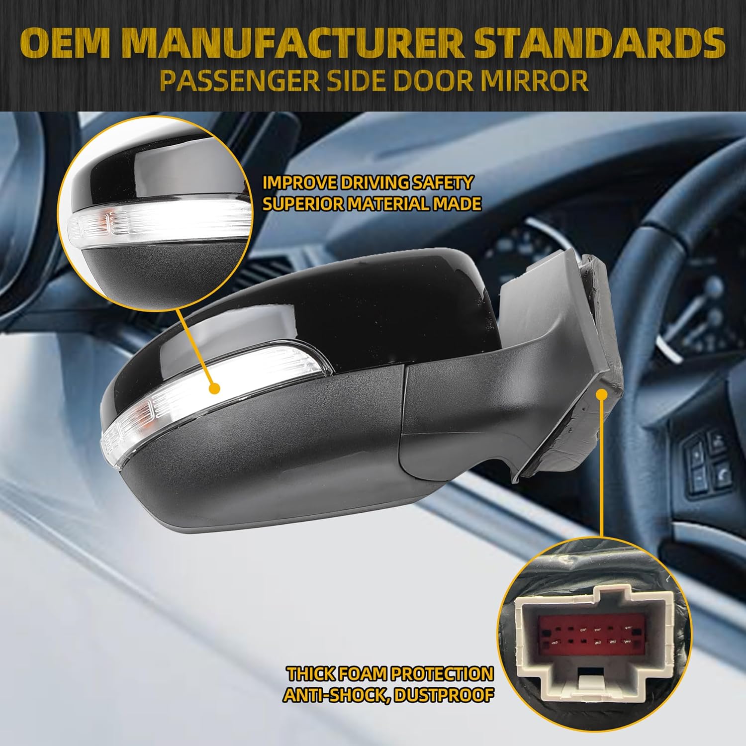 【Excellent Performance】The Right Outside Rearview Mirror Consists of Superior PC+ ABS Mirror Cover, and High Quality Glass That Are Not Tend to Broken, This Mirror Is Waterproof And Equipped With a Thick Foam At The Socket Efficient For Anti-Shock. Ensure Broader Vision And Safer Driving