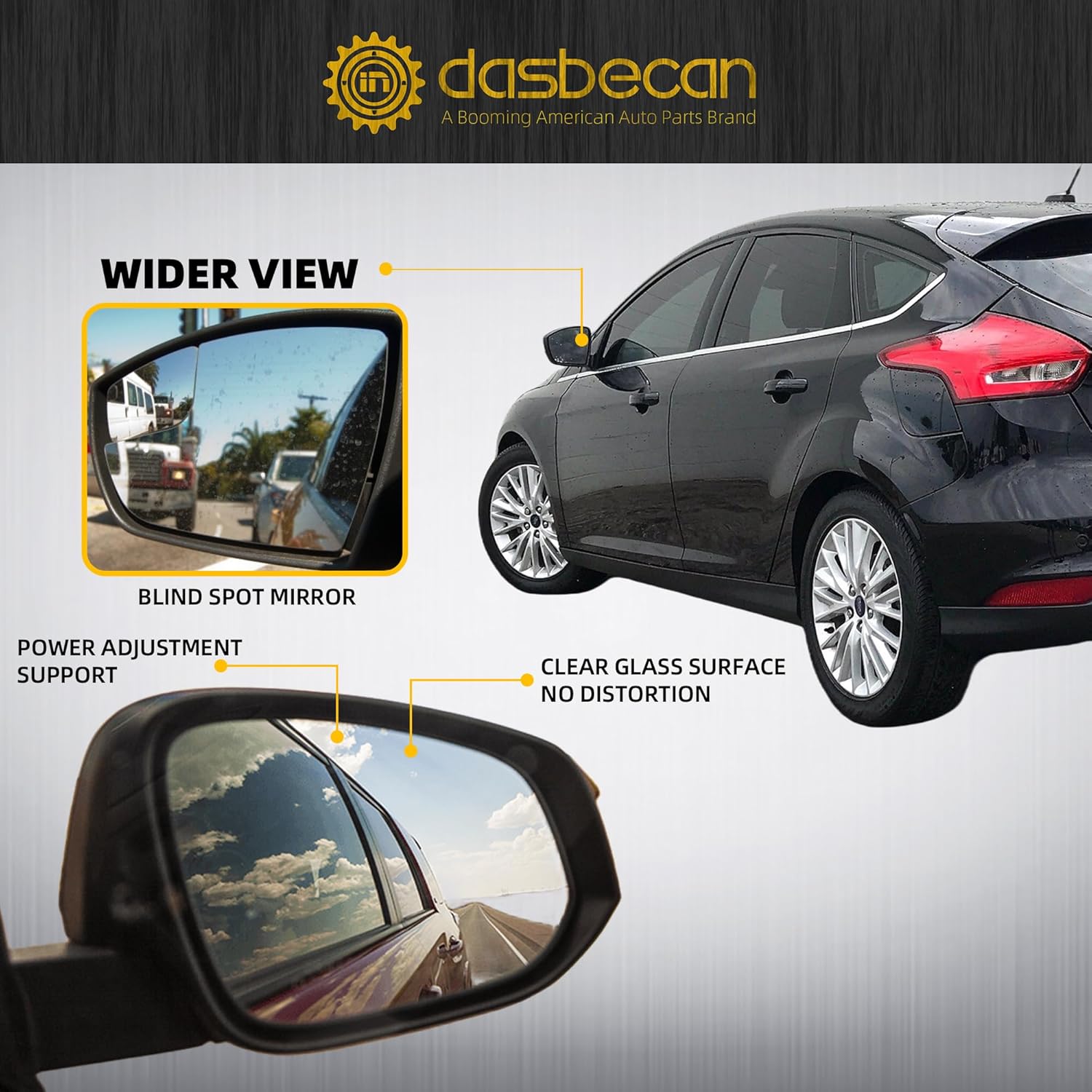【Comaptible With】The Passenger Side Mirror Compatible With 2015 2016 2017 2018 Ford Focus (Black Color)
