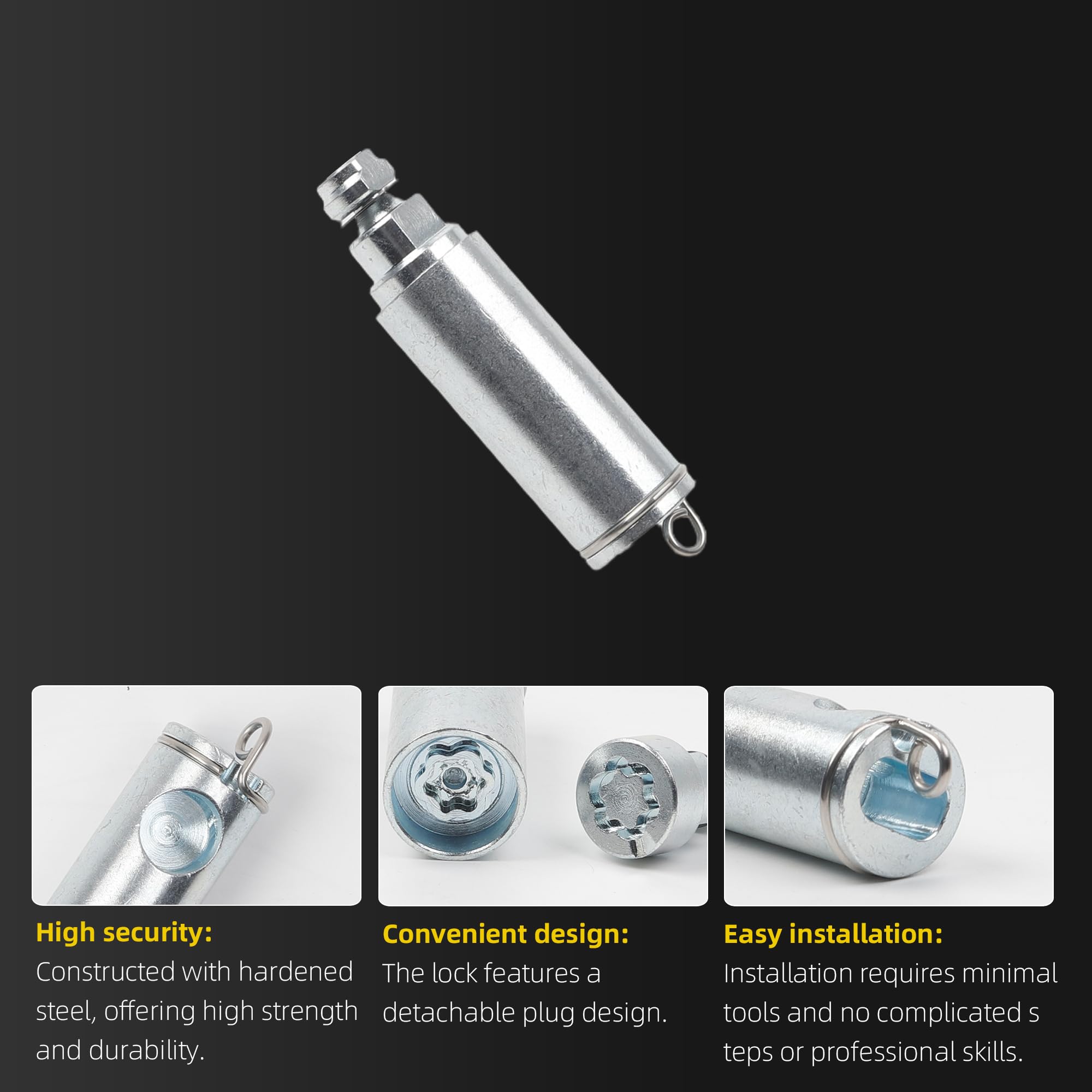 【High Quanlity】This Spare Tire Carrier-Lock Assembly is made of carbon steel,which gives it high strength and durability.In addition, it is galvanized, which effectively prevents the lock body from rusting even in harsh environments.