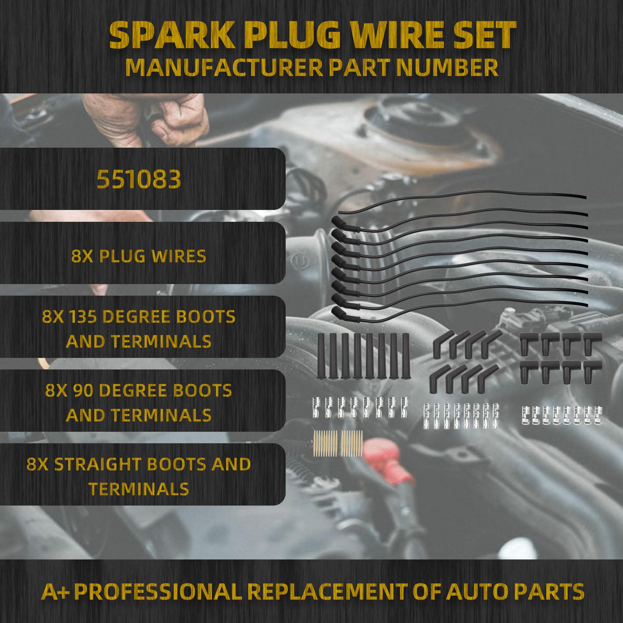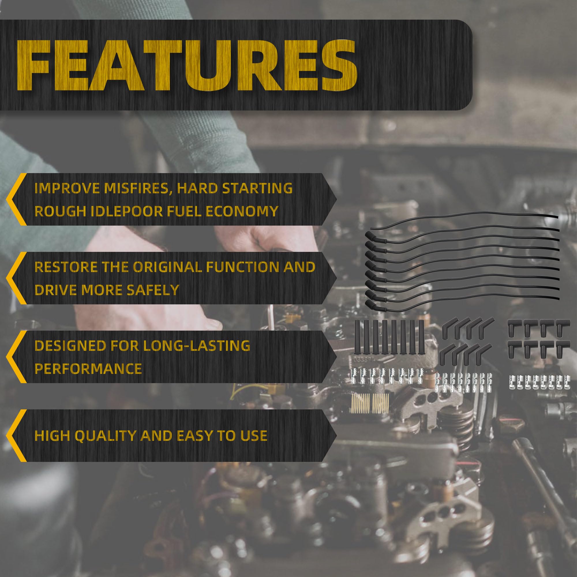 [Advantage]: Plug and Play by normal tools. The Ignition Wires Feature a Low Resistance Design That Enhances Ignition Efficiency. The Thickened Insulation Layer is Resistant to Oil Stains and Aging. The Engine Responds More Sensitively. It is Suitable for Daily Driving Scenarios.