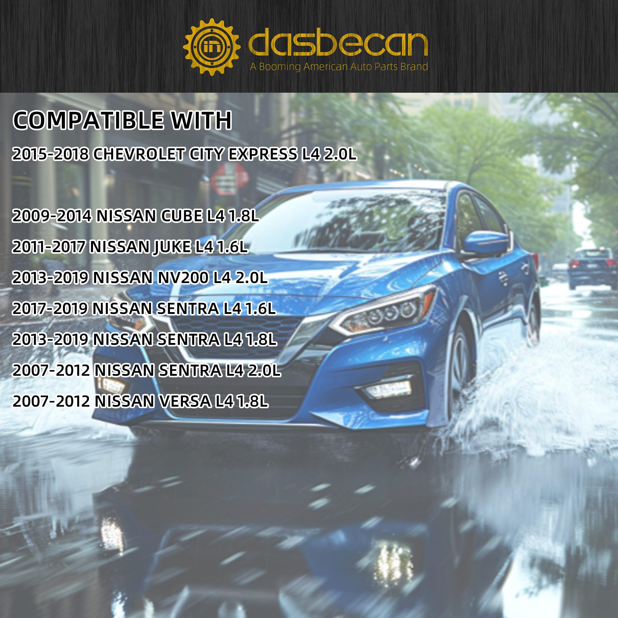 【Compatible With】2009-2014 Nissan Cube L4 1.8L 2011-2017 Nissan Juke L4 1.6L 2013-2019 Nissan NV200 L4 2.0L 2017-2019 Nissan Sentra L4 1.6L 2013-2019 Nissan Sentra L4 1.8L 2007-2012 Nissan Sentra L4 2.0L 2007-2012 Nissan Versa L4 1.8L 2015-2018 Chevy City Express L4 2.0L