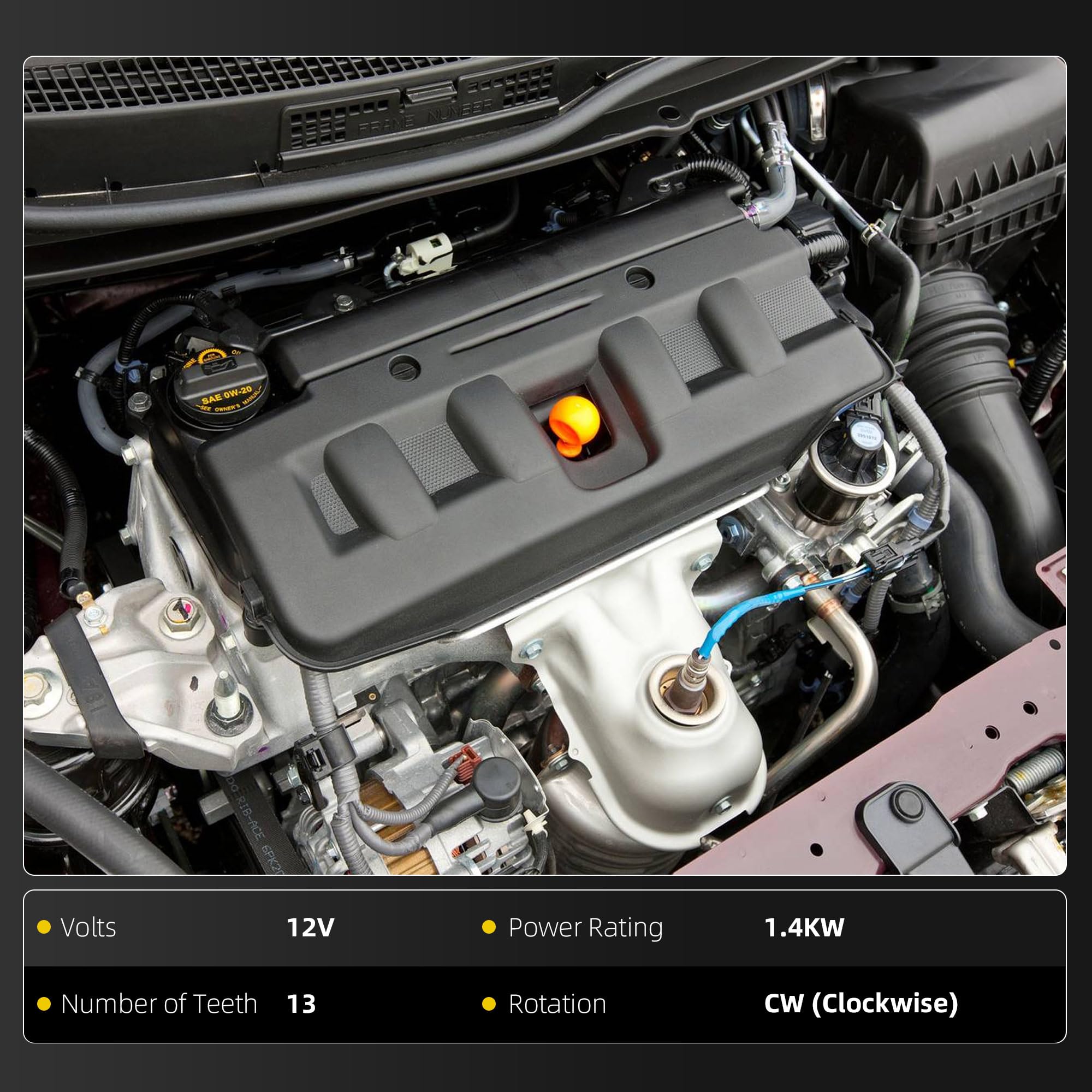 【Feature】Crafted from selected materials for hardness and toughness, this starter motor delivers reliable engine cranking. It is designed for quiet operation with reduced noise during ignition. Pre-aligned bolt slots are included to help ensure a straightforward installation and correct fitment. Consider replacing your starter if you experience symptoms like a clicking sound, slow cranking, or failure to start.
