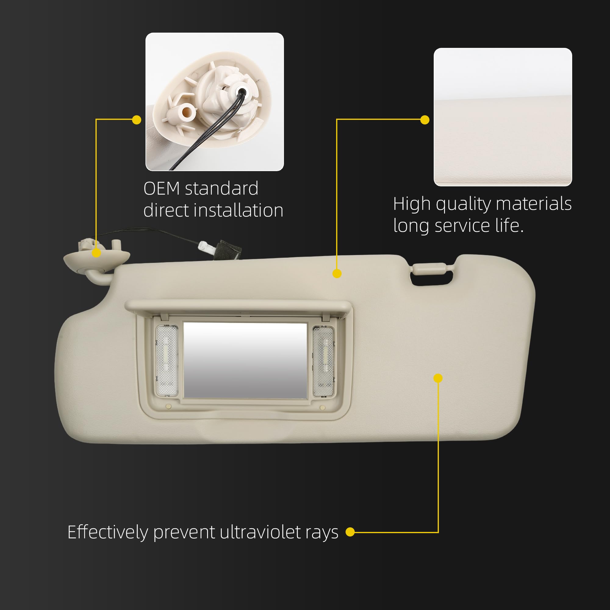 Feature: It meets OEM standards and can be directly replaced without any modifications. Installation is quick and easy, requiring no special tools. It also includes light and vanity mirror.