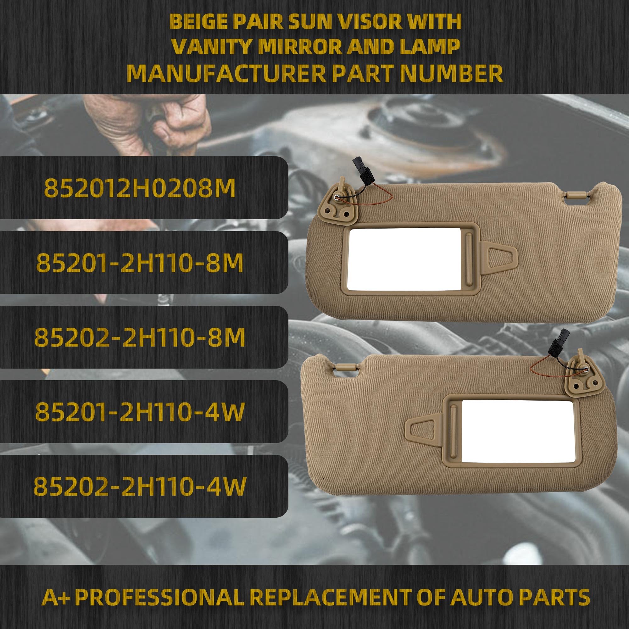 【Description】Beige Left Driver & Right Passenger Side Sun Visor Sun Shade with Vanity Light and Makeup Mirror