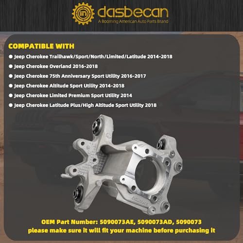 【Perfect fits Jeep Cherokee】 Rear Suspension Knuckle fits for Jeep Cherokee Trailhawk/Sport/North/Limited/Latitude 2014-2018; Jeep Cherokee Overland 2016-2018; Jeep Cherokee 75th Anniversary Sport Utility 2016-2017; Jeep Cherokee Altitude Sport Utility 2014-2018; Jeep Cherokee Limited Premium Sport Utility 2014; Jeep Cherokee Latitude Plus/High Altitude Sport Utility 2018