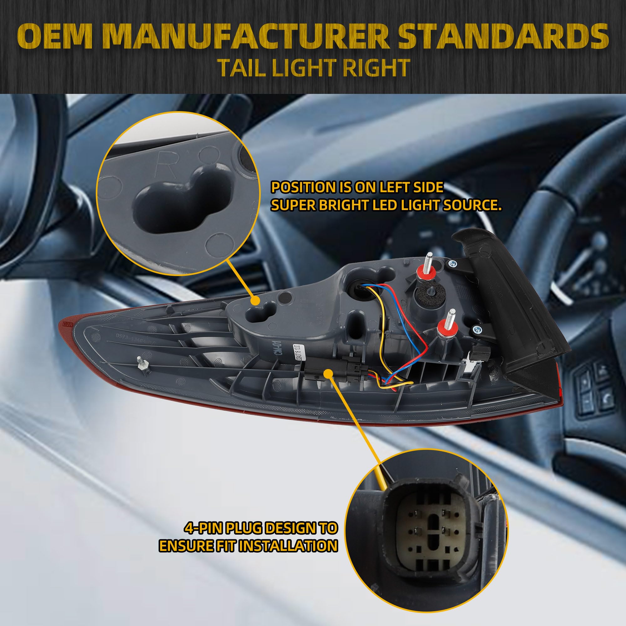 【Feature】The Passenger Side Taillight is Placed on Right side Outer, Super Bright Light LED Source. Same Plug, Same Size, Same Color, Same Brigtness