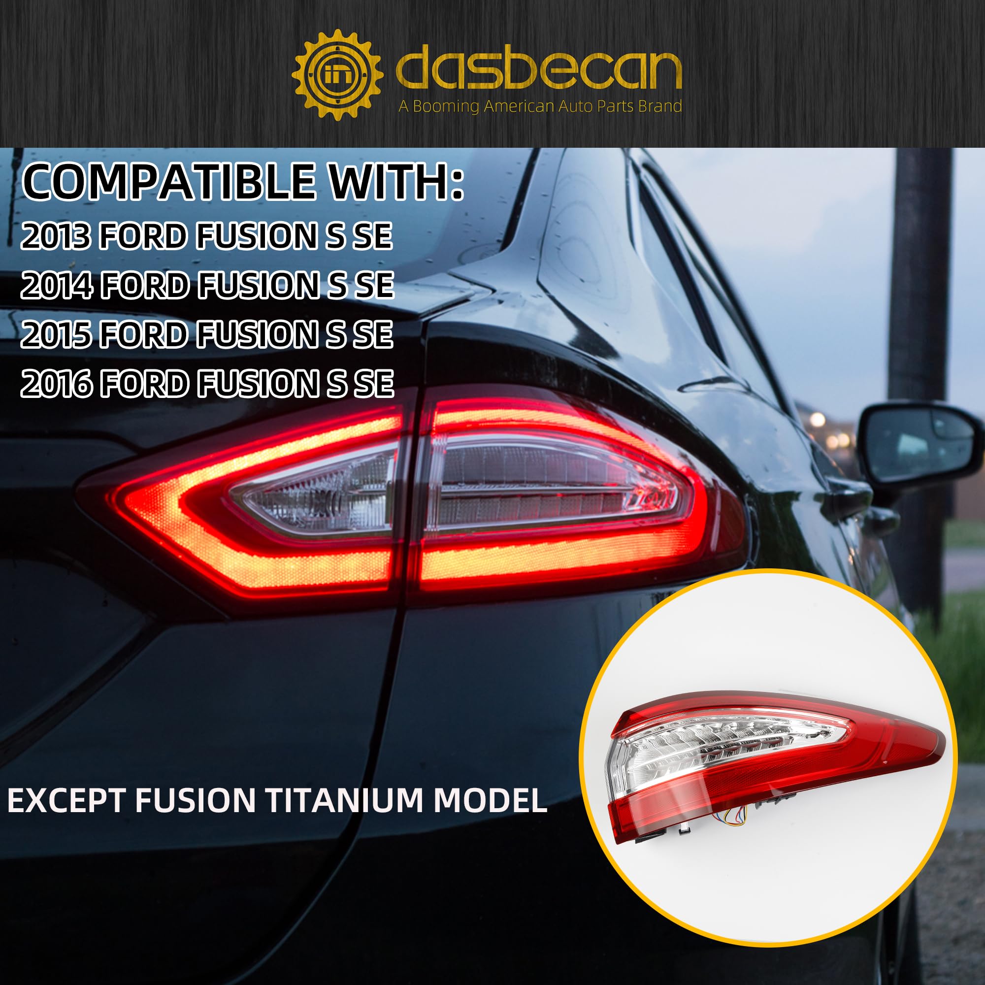 【Comaptible With】The Right Side Tail Lamp Compatible With Ford Fusion S / SE 2013 2014 2015 2016. CANNOT MATCH Titanium