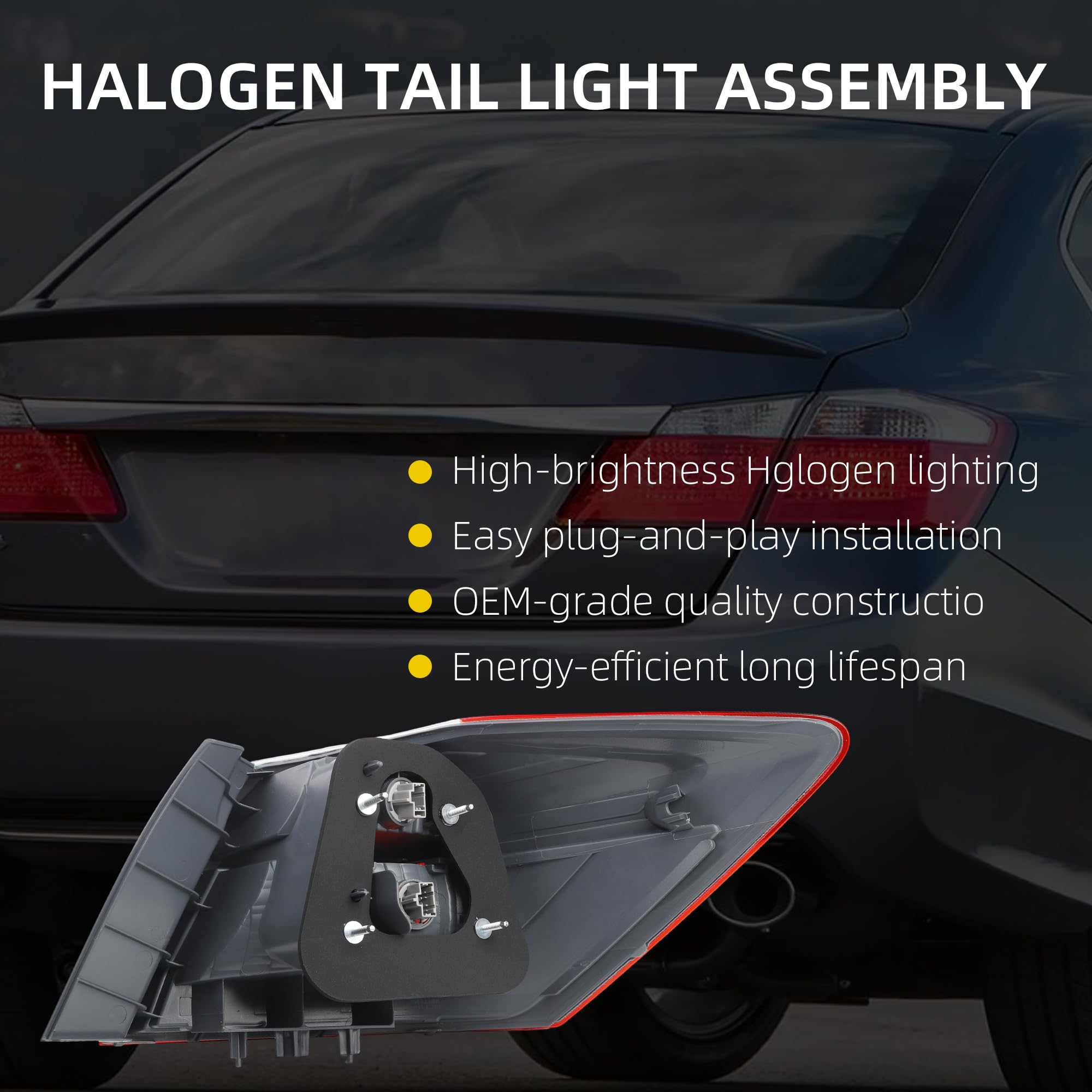 [Advantage]This Halogen tail light is OEM standard,made of high quality materials,waterproof, dustproof,anti-fog and reliable.With bulb and wiring harness,direct installation.
