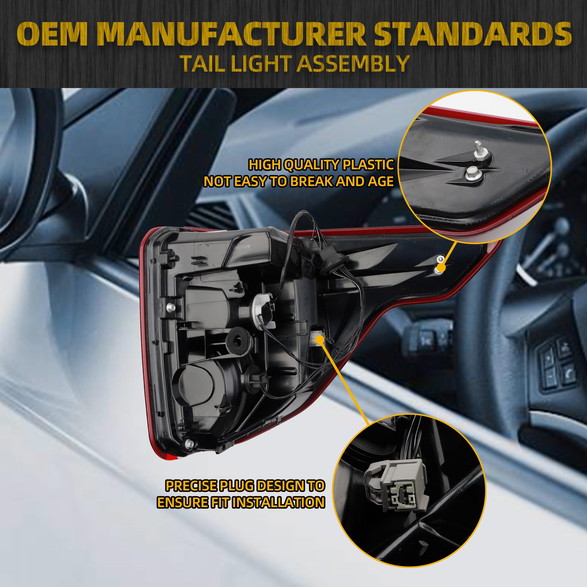 [Features]The Tail light is Made By high quality plastic, it is not easily damaged. Specifically OEM design. There is no need for cutting or modification. It can directly replace the original factory tail lights, retaining the original vehicle's wiring interfaces, and the installation can be completed within a few minutes.