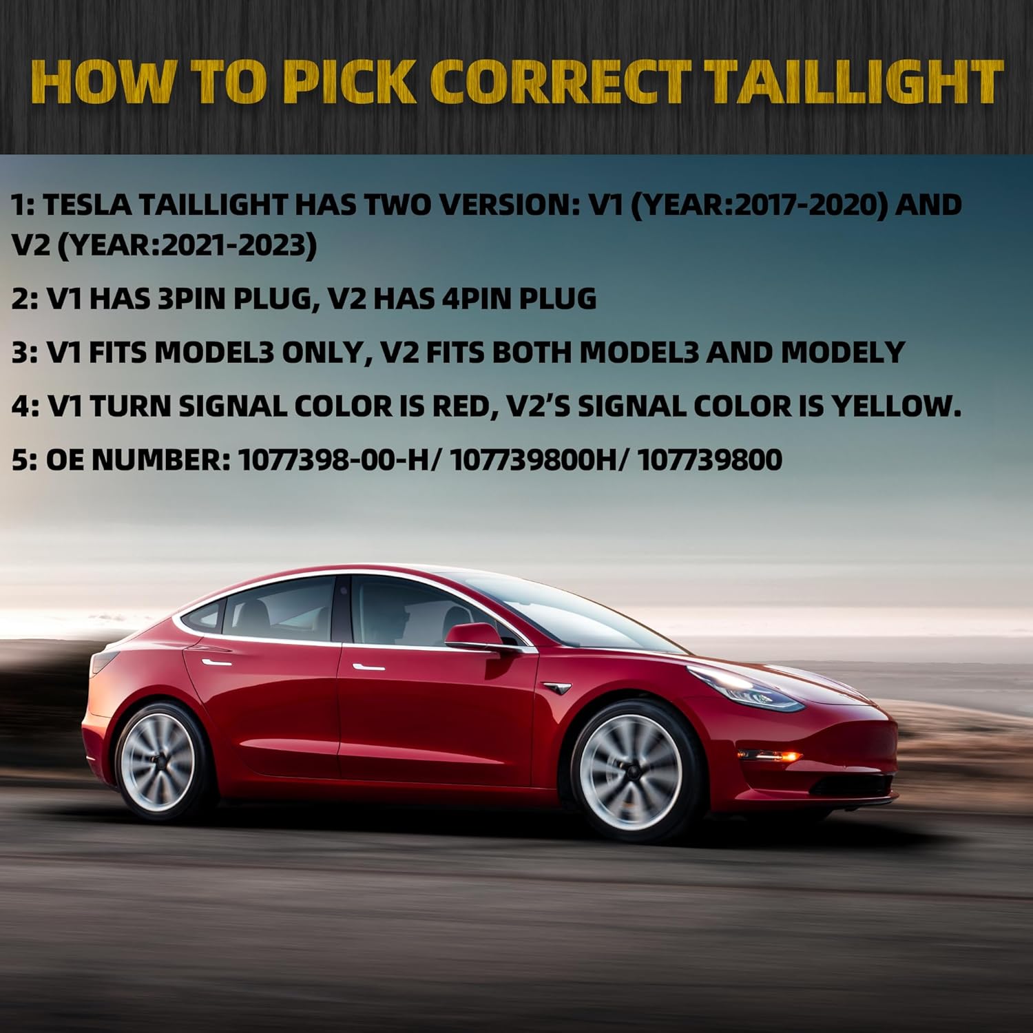 【Note】This Right Rear Lights CANNOT MATCH 2021-2023 Model Y, About 2017-2023 Type, The Brake Light is Red Color Shown on the Middle Bar (Model 3 ONLY). Please Confirm Its Model Year