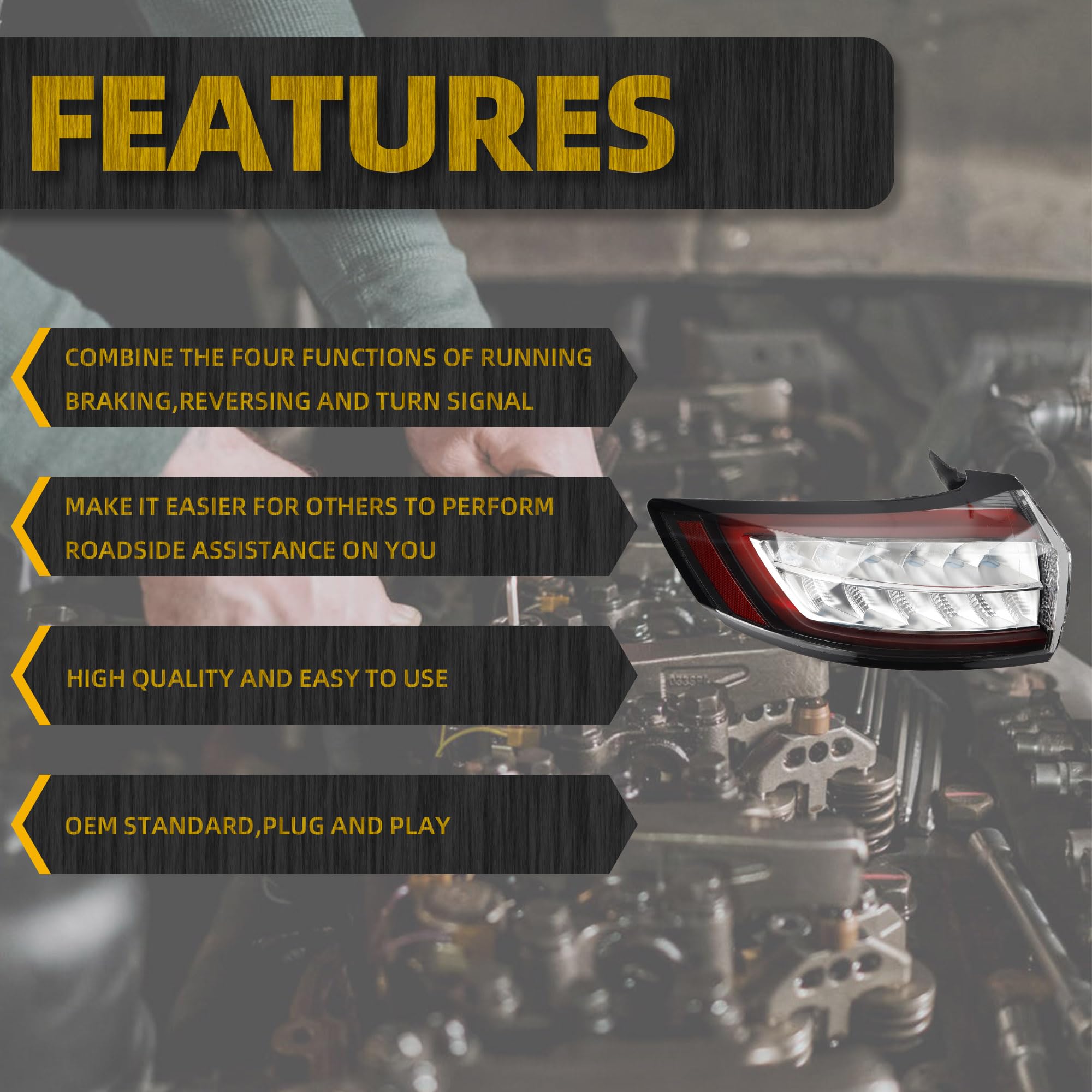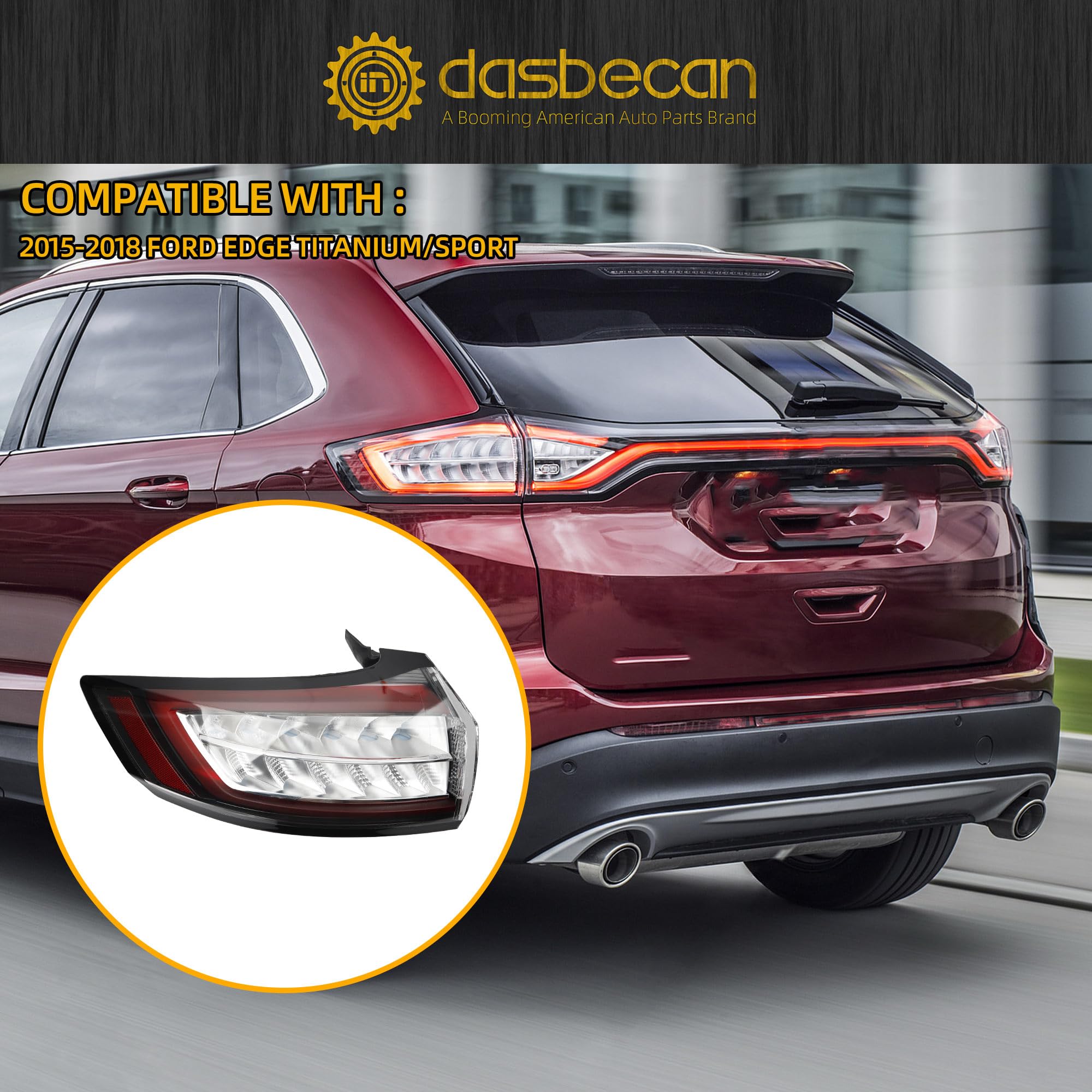 【Features】Ford Edge Rear Lamp is OEM Standard ,Made of high quality materials, Waterproof, dustproof, anti-fog and durable.With bulb and wiring harness ,direct installation
