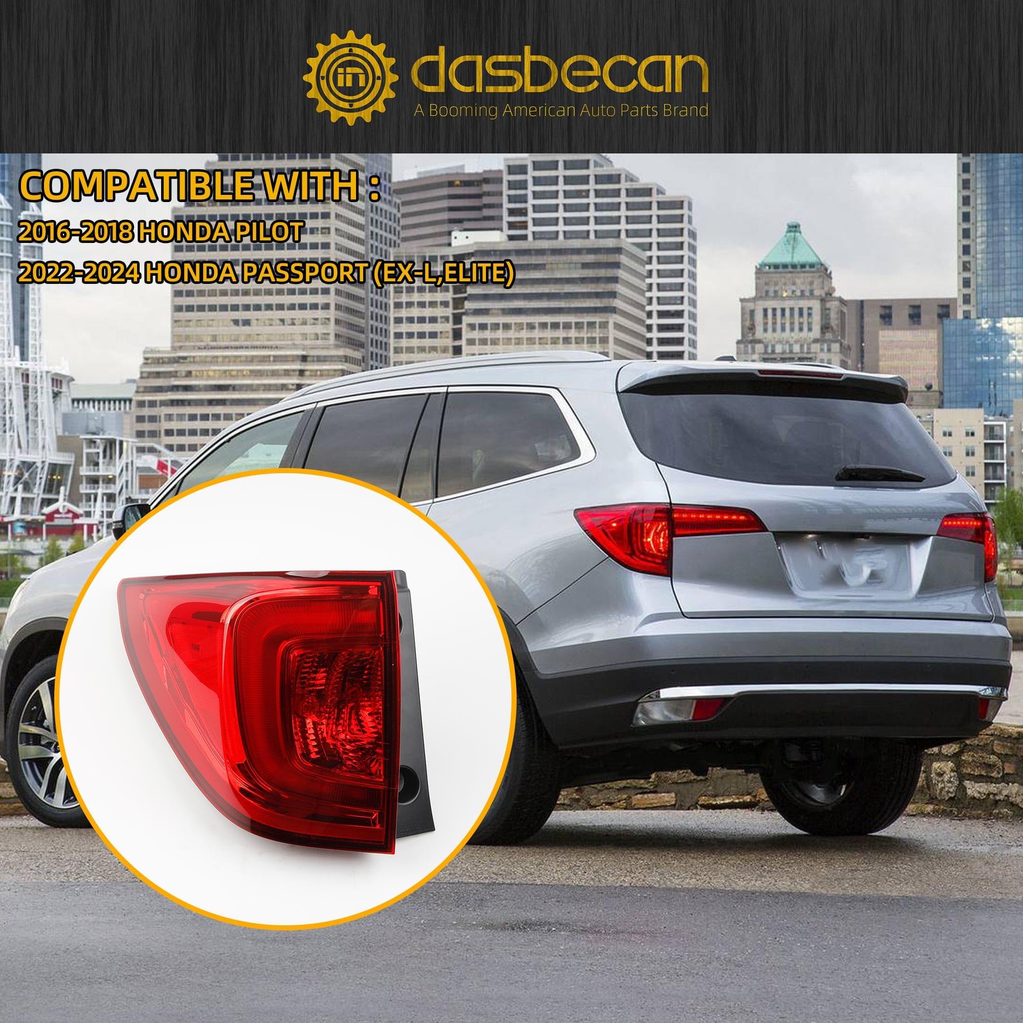 【Fitment】The tail light Assembly Compatible with 2016-2018 Honda Pilot, 2022-2024 Honda Passport (EX-L, ELITE) Note: Please check your sub-model