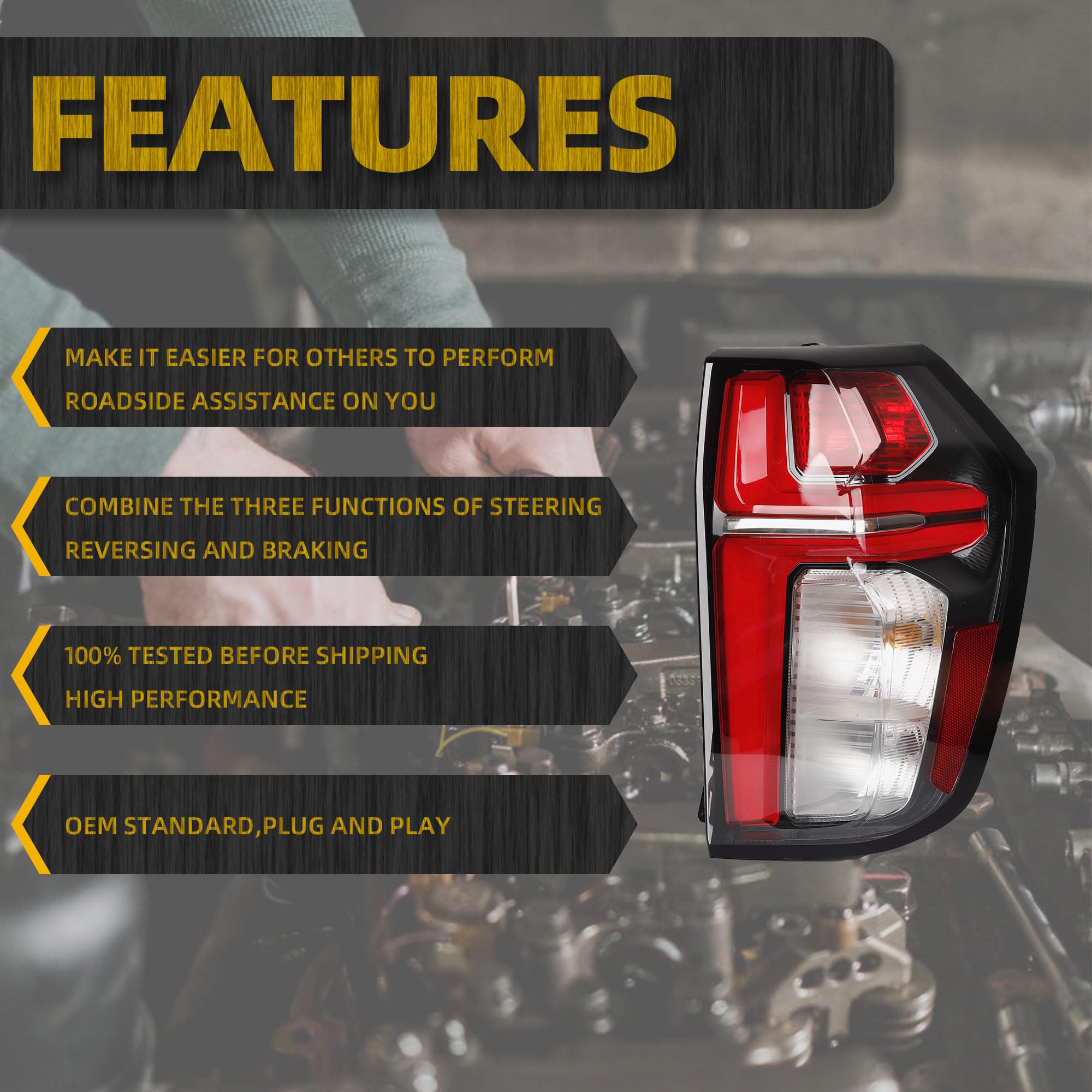 【Features】Chevy Tahoe Rear Lamp is OEM Standard ,Made of high quality materials, Waterproof, dustproof, anti-fog and durable.With bulb and wiring harness ,direct installation