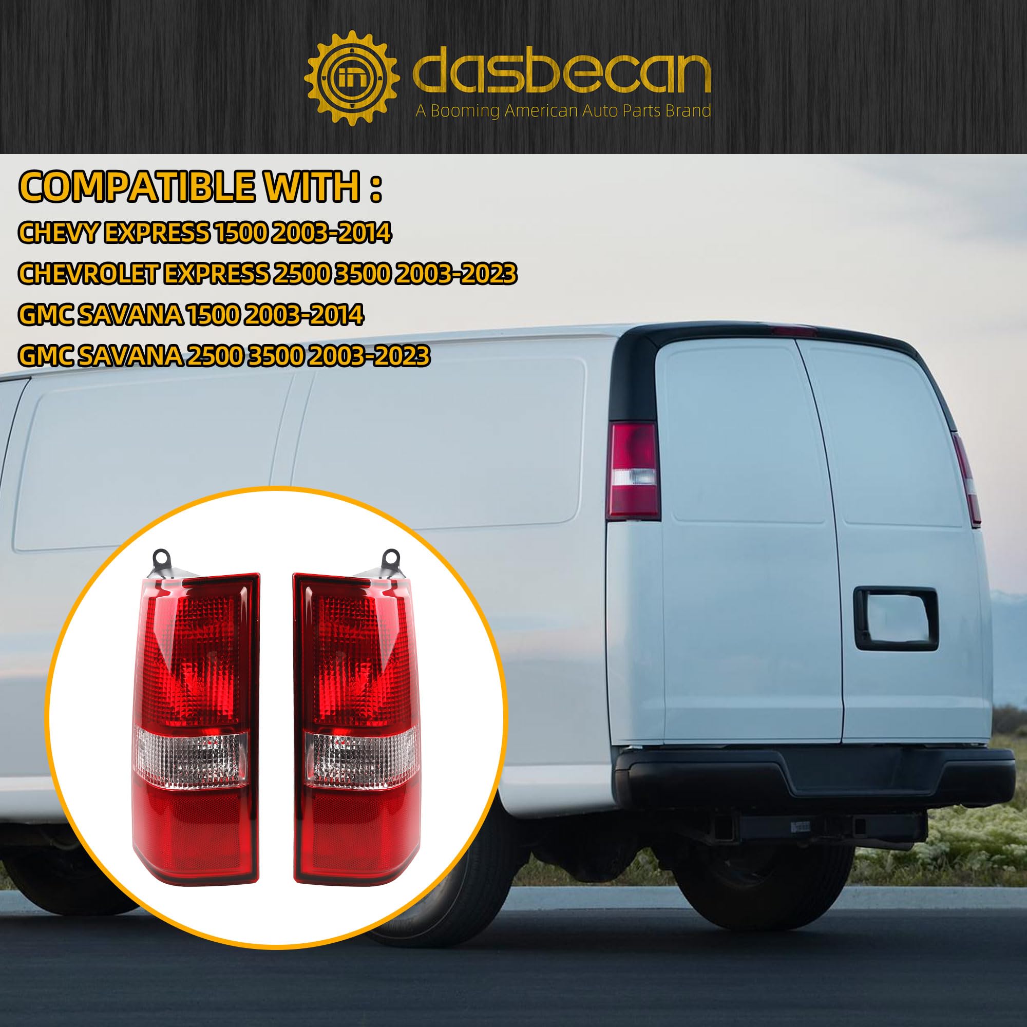 【Fitment】The Tail light Assembly Compatible with 2003-2014 Chevy Express 1500 , 2003-2023 Chevy Express 2500/3500 , 2003-2014 GMC Savana 1500 , 2003-2023 GMC Savana 2500/3500