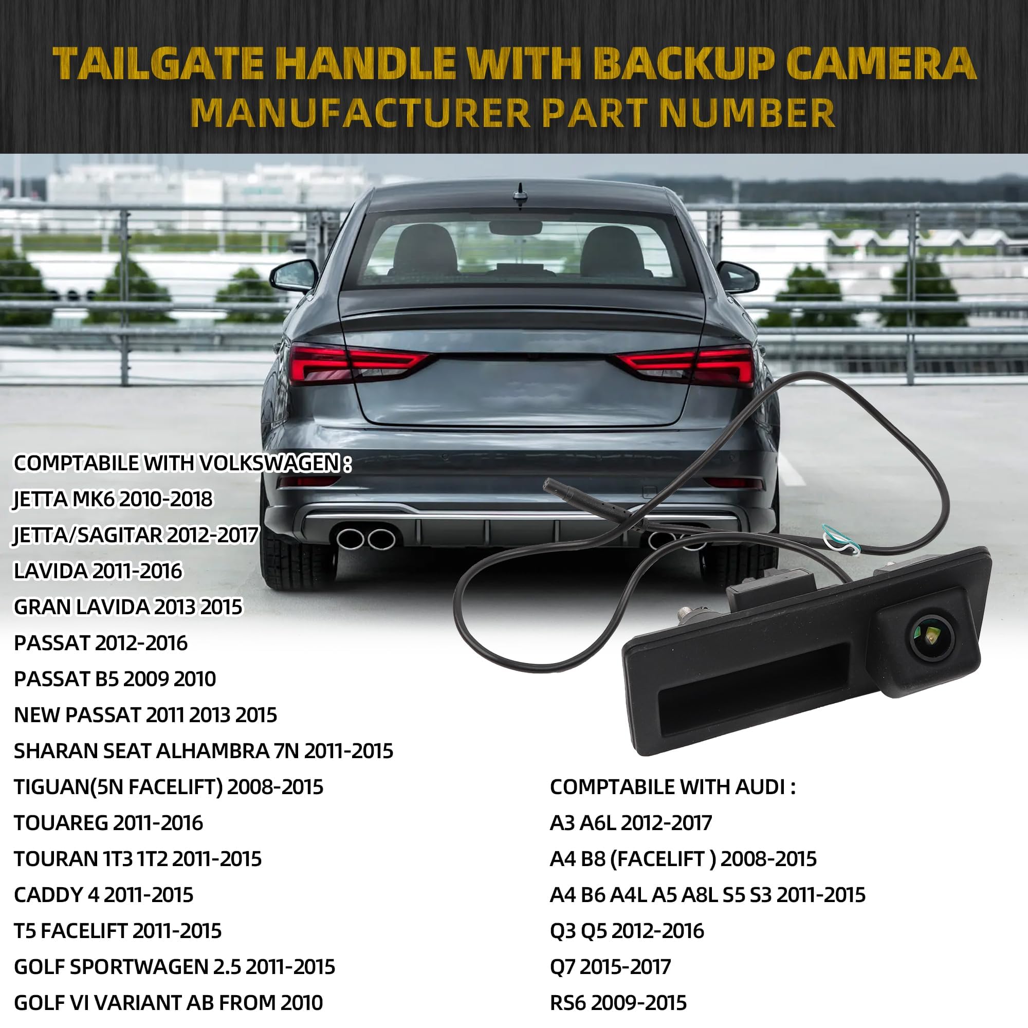 Compatible with Volkswagen: VW Jetta MK6 2010-2018; Jetta/Sagitar 2012-2017; Lavida 2011-2016; Gran Lavida 2013 2015; Gran Lavida 2013 2015; Passat 2012-2016; Passat B5 2009 2010; New Passat 2011 2013 2015; Sharan Seat Alhambra 7N 2011-2015; Compatible with Tiguan(5N facelift) 2008-2015; Touareg 2011-2016; Touran 1T3 1T2 2011-2015; Caddy 4 2011-2015; T5 Facelift 2011-2015; Golf Sportwagen 2.5 2011-2015; Golf VI Variant ab from 2010