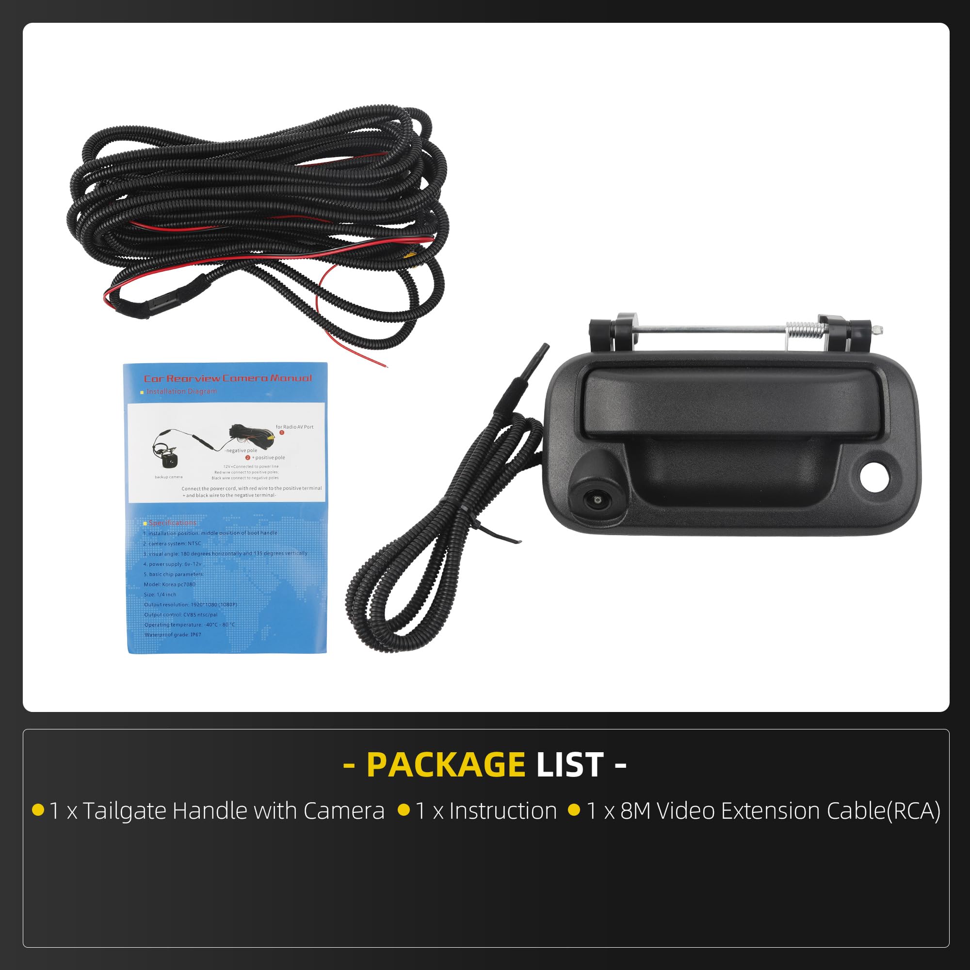 HD Picture: Works Great at Night: 720p HD resolution gives you a super sharp view. Automatically switches to night vision when it's dark, so you can see clearly even when backing up at night. Shows parking guide lines to help you judge distances perfectly.