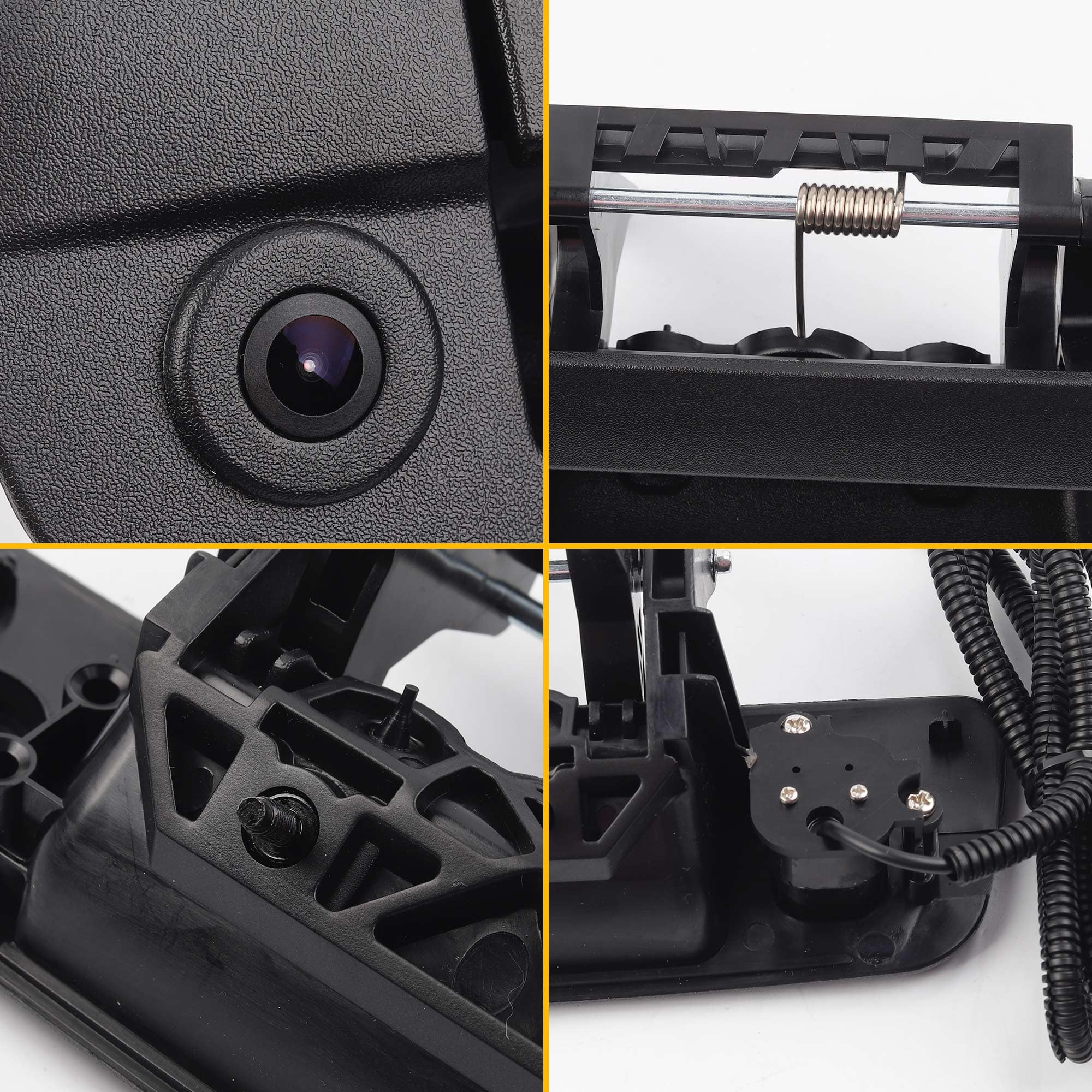 Packing&Installation: 1 PC * Tailgate handle camera & wiring harness. RCA connector and 4 Pins for direct installation, which is easy to operate. Before purchasing, please ensure that your tailgate camera is fully compatible with ours.