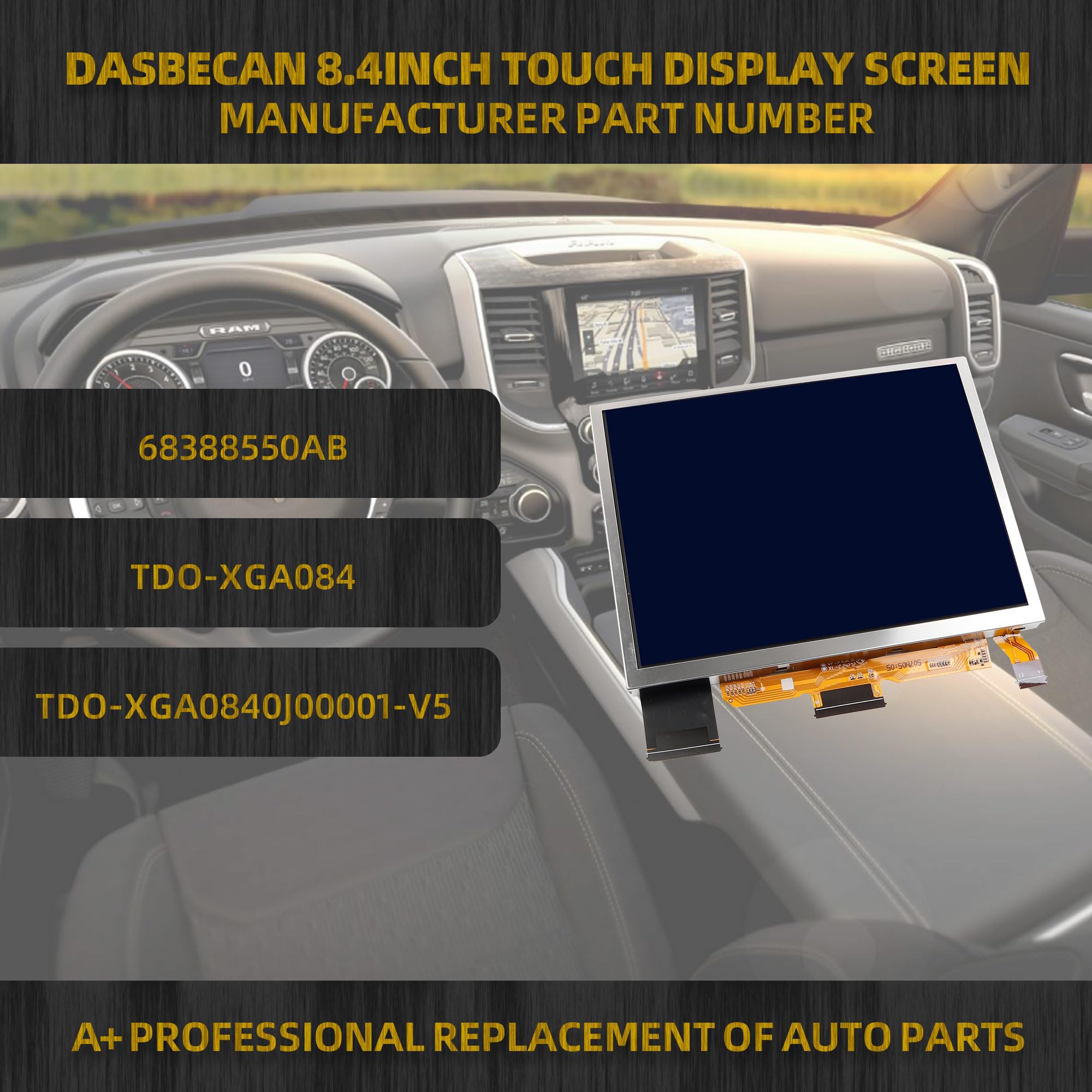 【Replace】The uconnect 8.4 navigation system LCD screen replaces# TDO-XGA08400001. Replacement for Uconnect 4 / 4C / UAQ / UAS 8.4" LCD Touch Screen Radio for GPS and NON-GPS radios.Superseded Part Number:TDO-XGA084 | TDO-XGA0840J00001-V5 | TDO-XGA0840J00001-V4 | TDO-XGA0840J00001-V3 | TDO-XGA0840J00001-V2 | TDO-XGA0840J00001-V1 | LM1490A01-EFTM FTM84DC01-D | BLM96100220 | BLM9611010.Replace part number: 68388630AD | 68388570AB | 68388570AC | 68388570AD | 68388630AB | 68388630AC | 68388670AB |